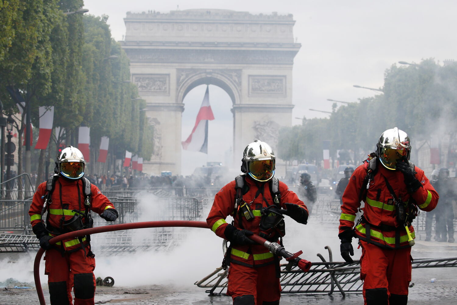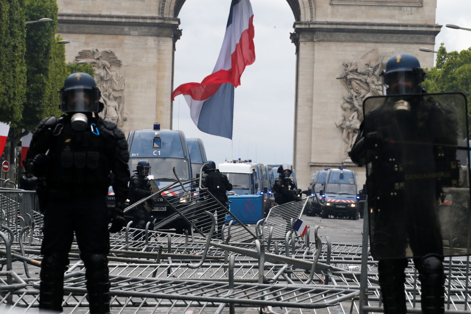 Mais tarde, as autoridades francesas tiveram de usar gás lacrimogéneo para dispersar centenas de manifestantes nos Campos Elísios.