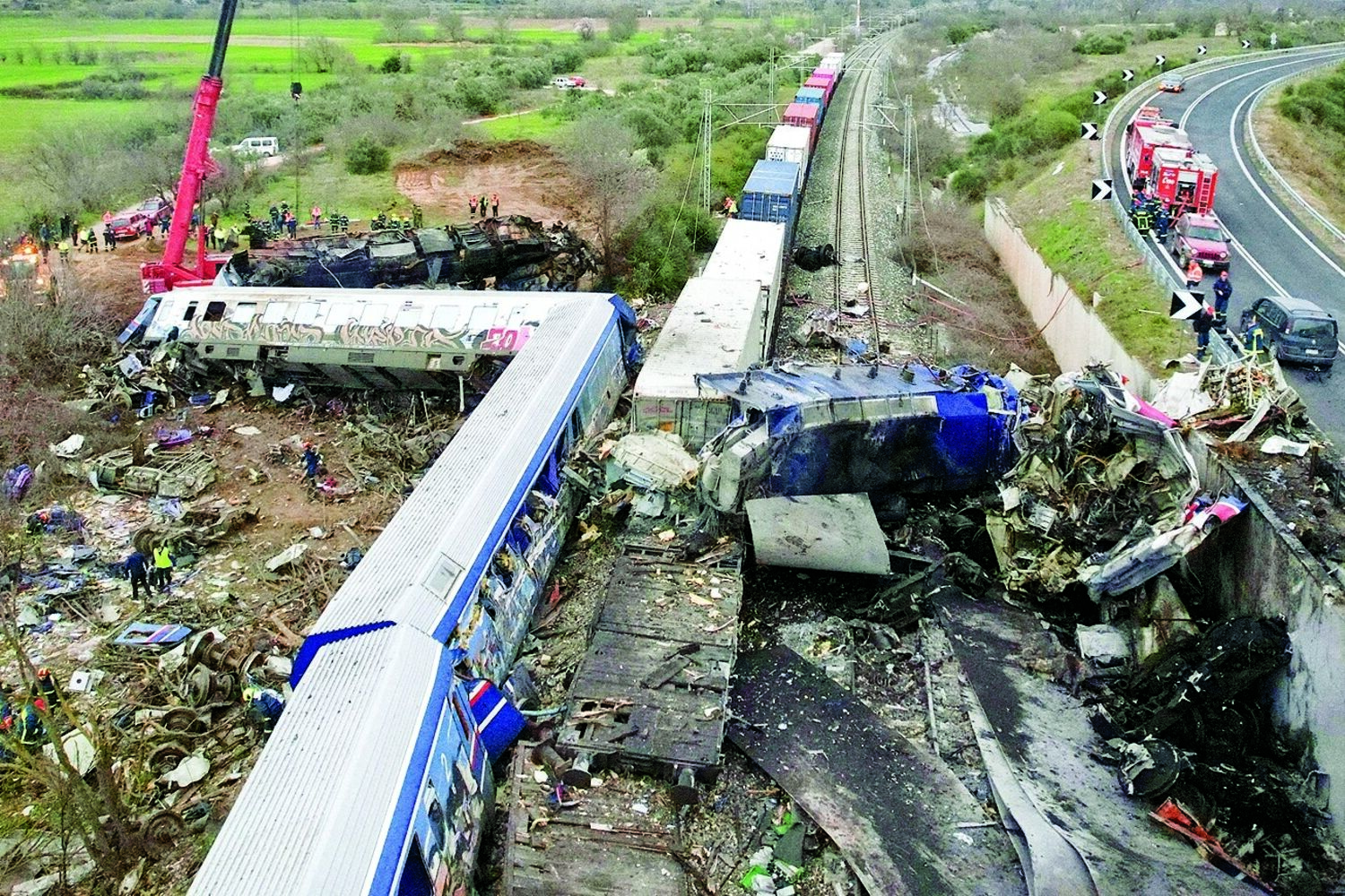 Um choque frontal entre um comboio de passageiros e um de carga causou a morte a pelo menos 38 pessoas na Grécia, deixado dezenas de outras feridas. O número de vítimas poderá aumentar muito, pois uma carruagem incendiou-se, carbonizando um número indeterminado de passageiros.