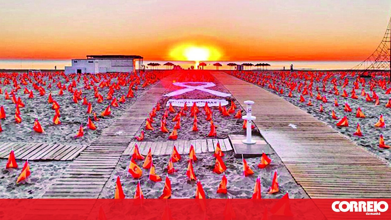 Numa praia de Valência foram este domingo colocadas 53 000 bandeiras de Espanha, em homenagem às vítimas mortais de Covid-19 no país desde o início da pandemia.