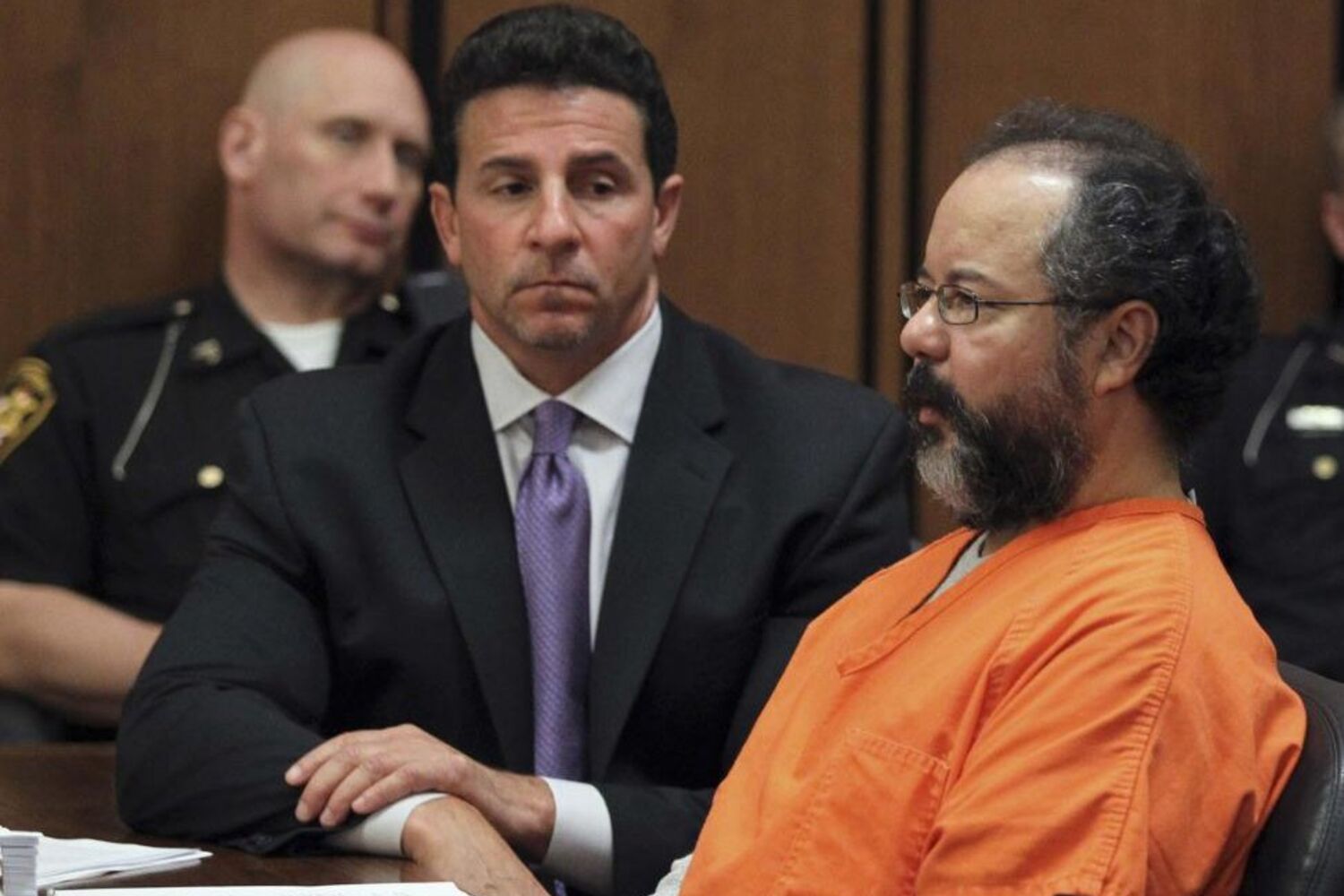 "Compreende que ao aceitar este acordo, você nunca será libertado da prisão?", perguntou o juiz Michael Russo, durante a sessão de julgamento de hoje, em Cleveland. "Compreendo, sim", respondeu o acusado, sentado de fato laranja entre os dois advogados.