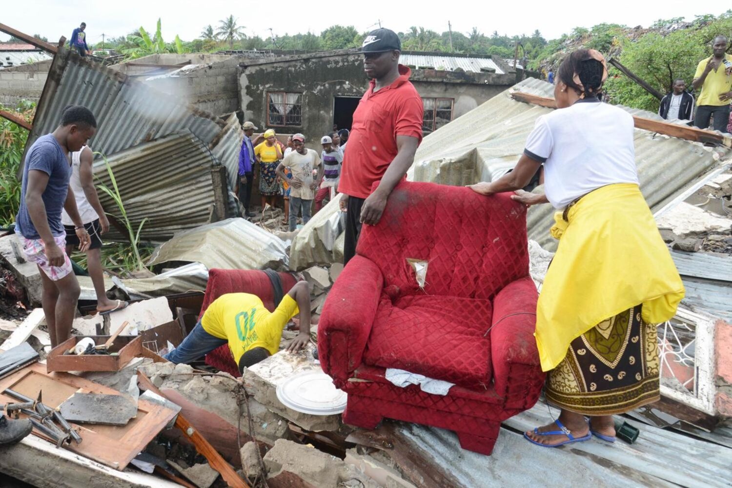 Pelo menos sete casas ficaram soterradas por deslizamento de lixo em Hulene.