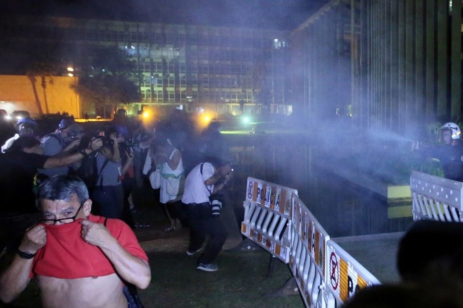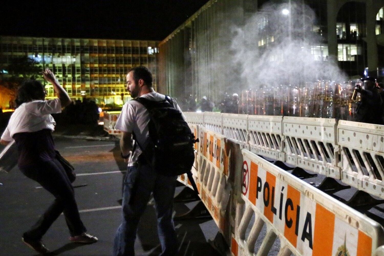 Manifestante atira foguete em esplanada