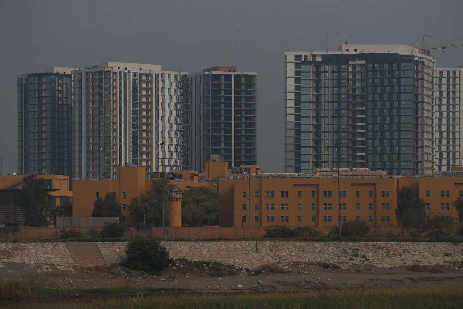 Quatro roquetes disparados contra a representação diplomática foram abatidos.