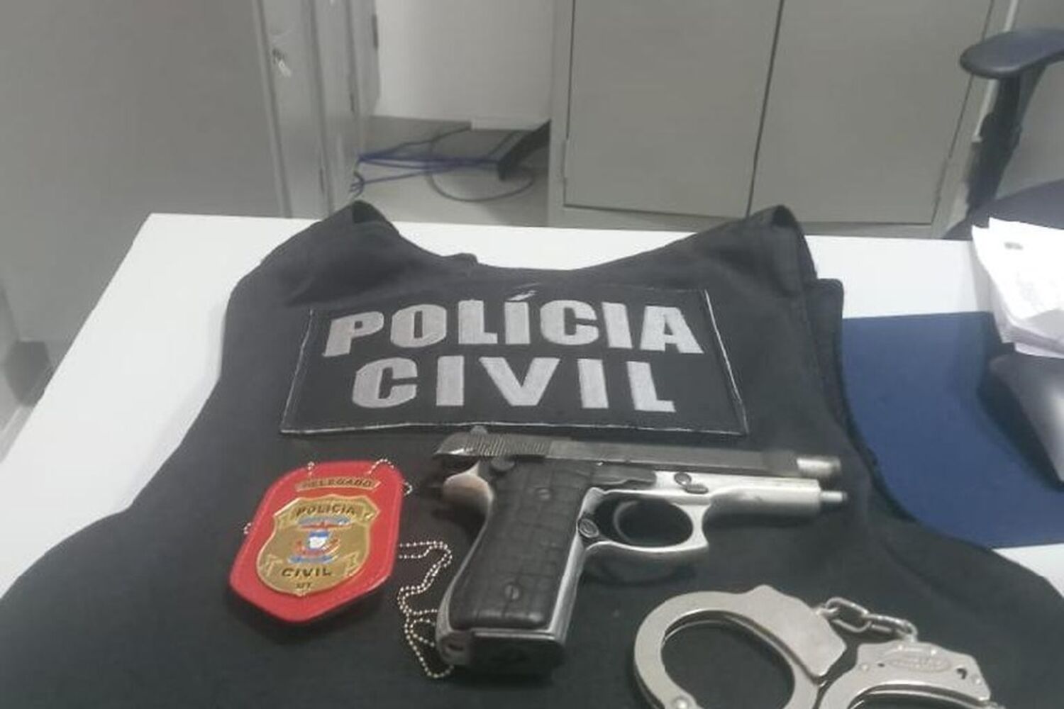 A arma usada, uma pistola de calibre 7,65 mm, foi recuperada.