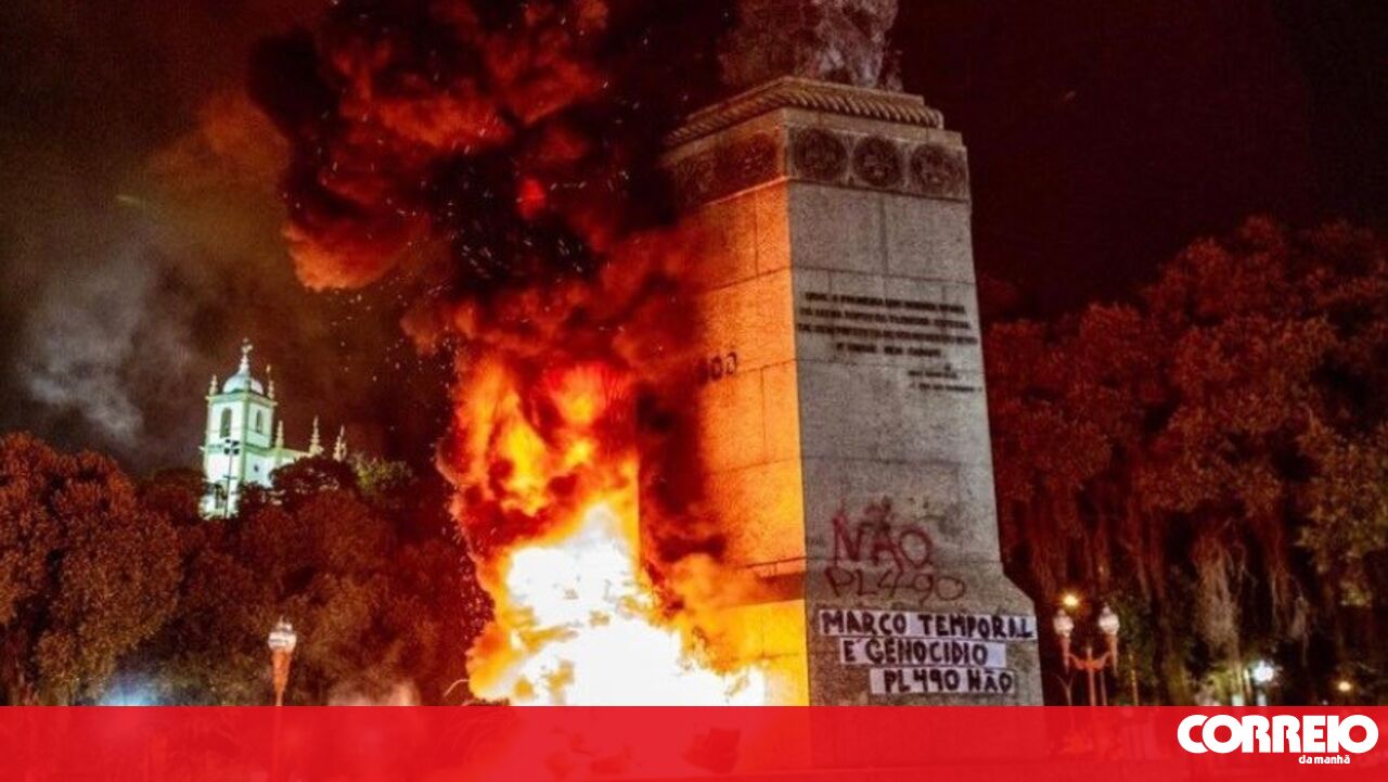 Um protesto no Rio de Janeiro, que decorreu durante a madrugada desta terça-feira terminou com a estátua do navegador português que descobriu o Brasil, Pedro Álvares Cabral, vandalizada e incendiada.