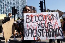 Em resposta, a multidão gritou "Qual é o nome dele? George Floyd" e "Um já foi, faltam três", numa referência aos quatro agentes da polícia envolvidos na prisão de Floyd.