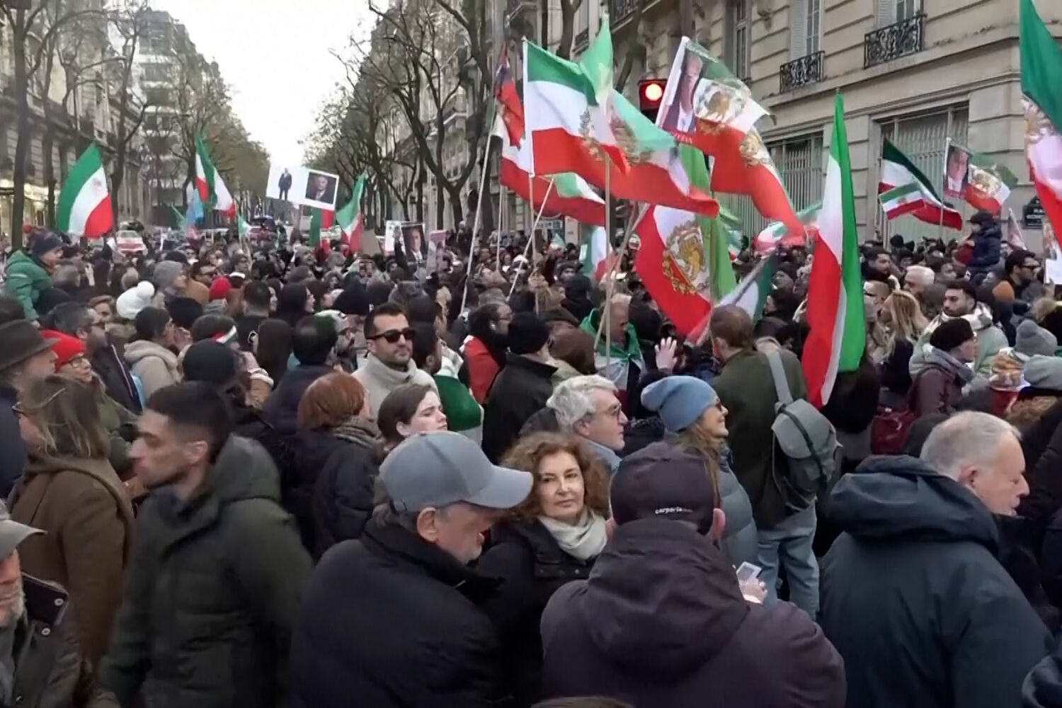 Dirigindo-se aos cidadãos iranianos "fora do Irão", enfatizou que "todas as embaixadas e consulados iranianos pertencem ao povo iraniano" e pediu que "os adornem com a bandeira nacional do Irão", referindo-se à bandeira utilizada pela antiga monarquia iraniana, derrubada pela Revolução Islâmica de 1979, em vez da atual bandeira da República Islâmica.