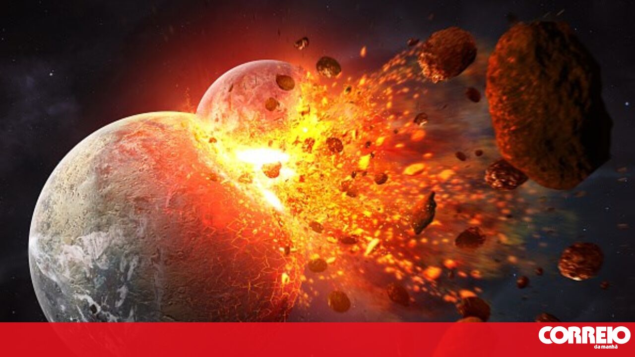 A colisão entre Theia e o planeta Terra terá originado a Lua como a conhecemos hoje.