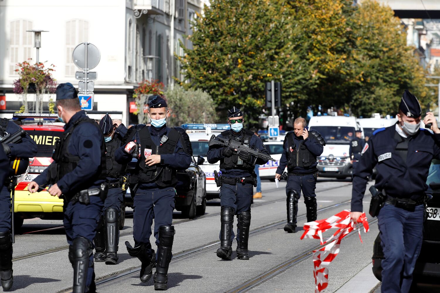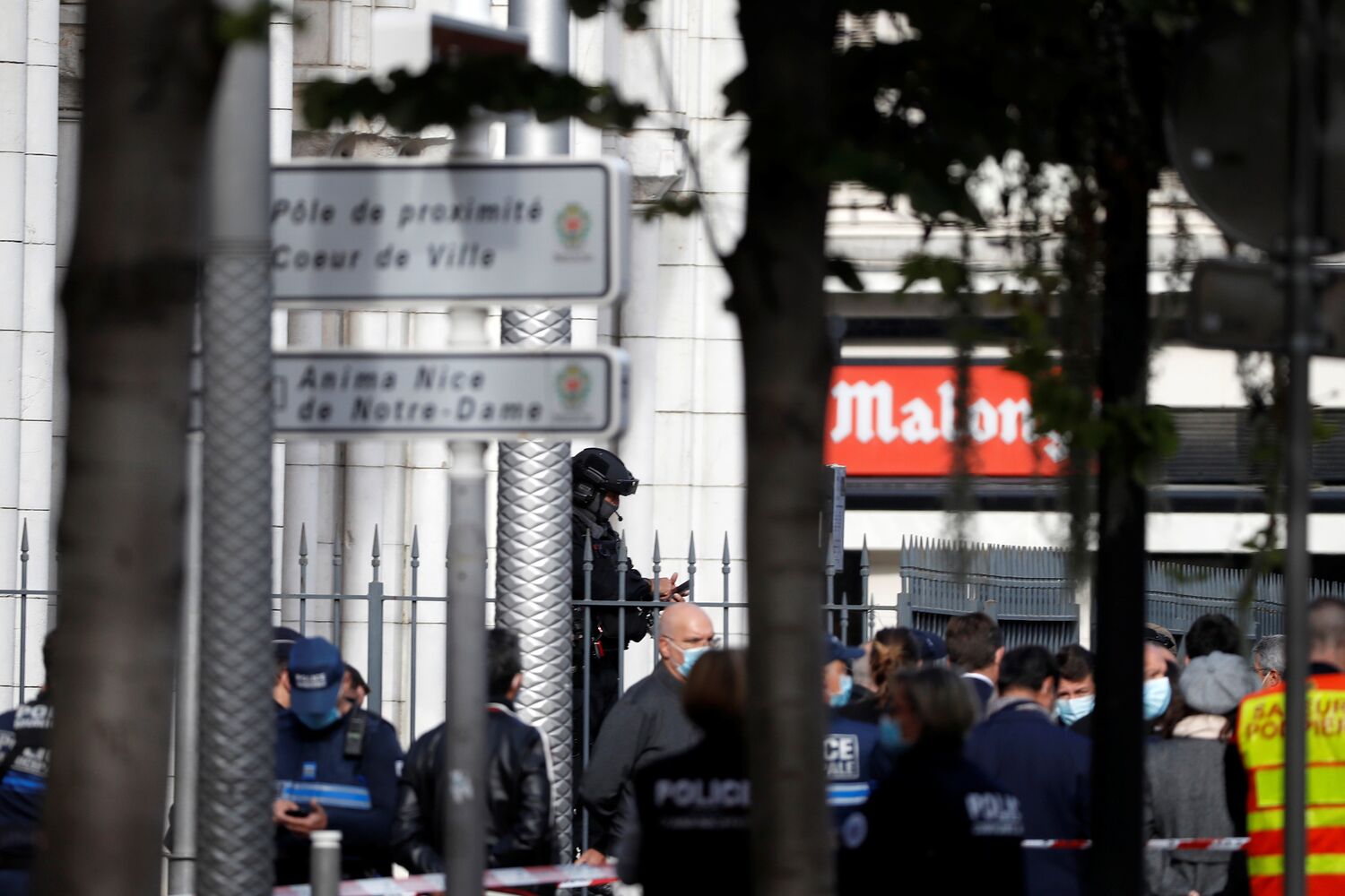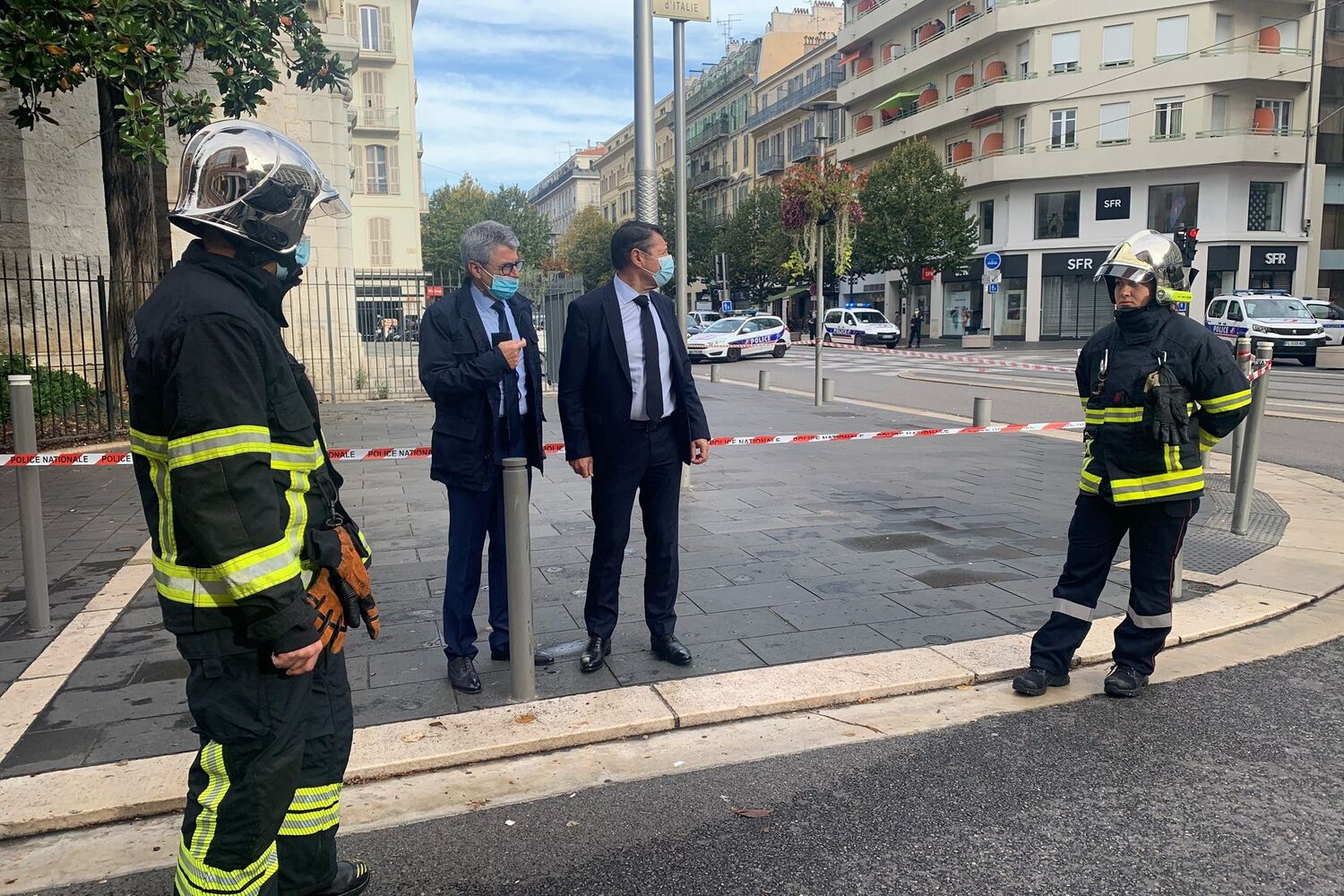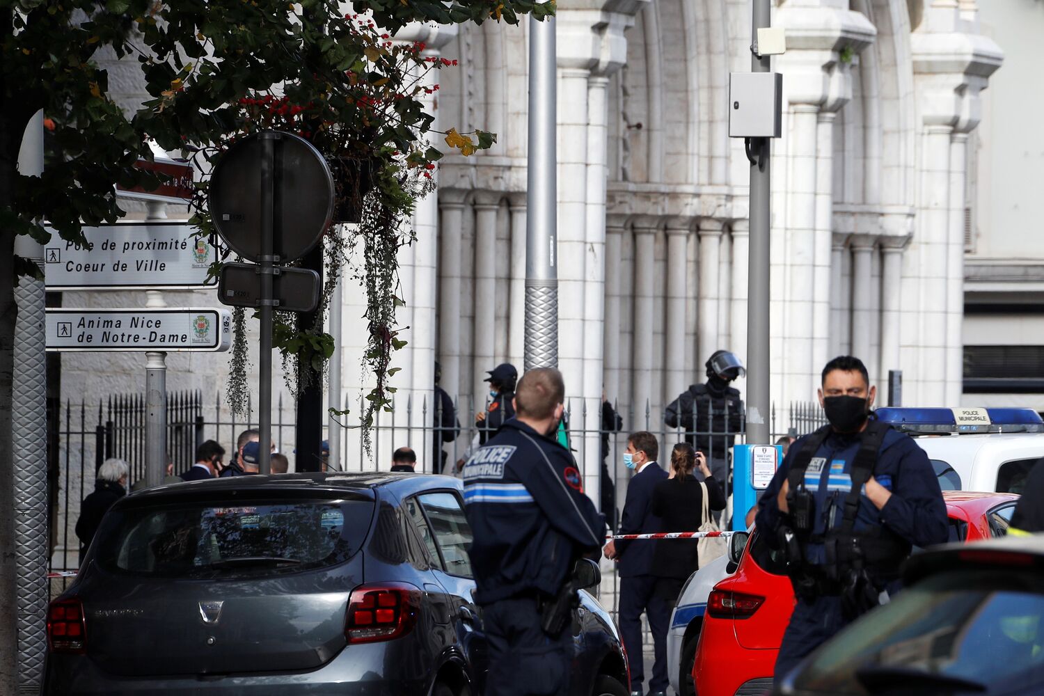 Emmanuel Macron na catedral que foi atacada e anunciou que colocou sete mil militares nas ruas, no âmbito da operação Sentinela. "A França está a ser atacada. Temos de nos unir. Na França há apenas uma comunidade, é a comunidade nacional. Devemos unir-nos e não ceder ao espírito de divisão", disse o presidente francês.