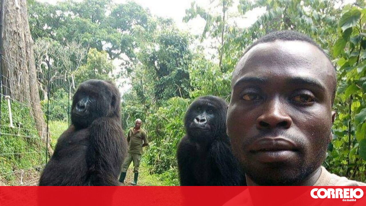 Um guarda florestal que ajuda a proteger gorilas no Parque Nacional de Virunga, na República Democrática do Congo, aproveitou o momento em que se cruzou com dois gorilas para tirar algumas selfies. "Mais um dia no escritório", escreveu Mathieu Shamavu na legenda das fotografias.