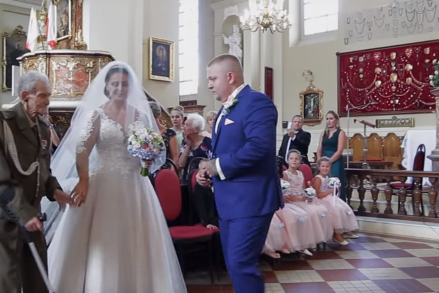 O momento emocionante comoveu os convidados presentes na igreja mas também o seu "neto", que não escondeu as lágrimas quando Joanna e Bronislaw chegaram junto a si, no altar.