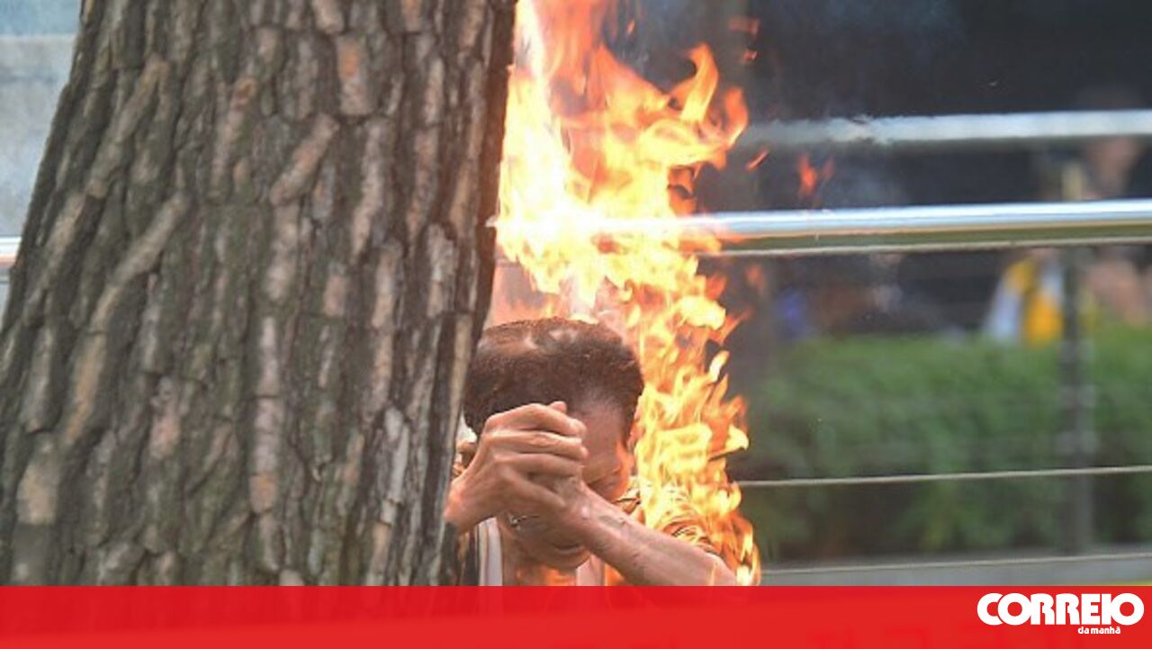 Testemunhas no local disseram que outros manifestantes e equipas de emergência tentaram apagar as chamas e que o homem foi retirado do local numa maca.