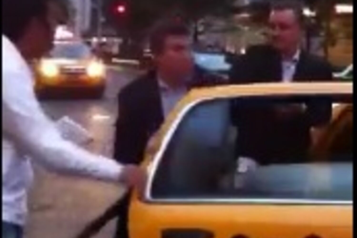 Os dois continuaram a lutar pelo direito a entrar no táxi, trocando empurrões e murros, até que um deles conseguiu sentar-se no banco traseiro. Ao que foi menos hábil restou a 'consolação' de bater violentamente com a porta.