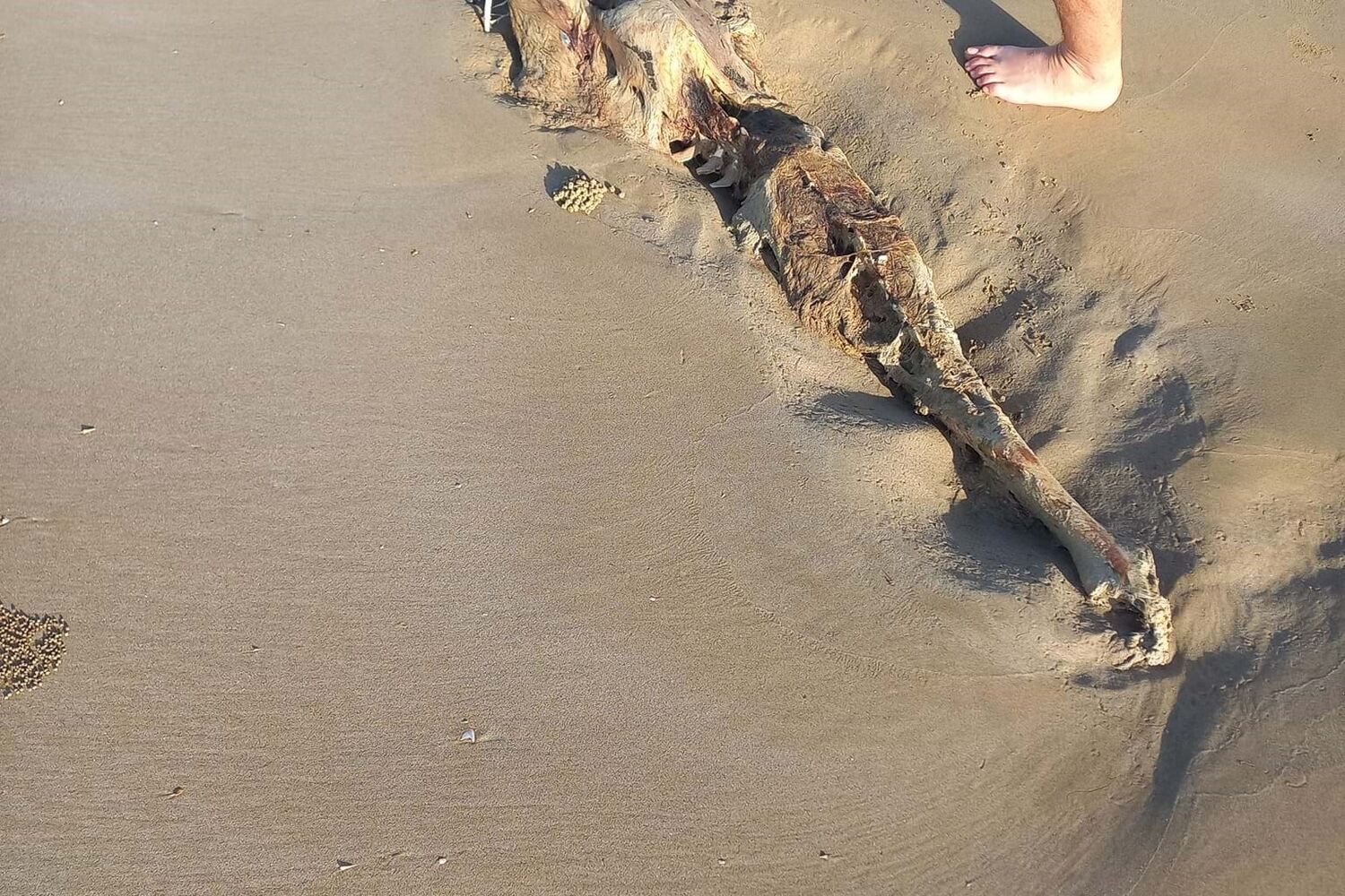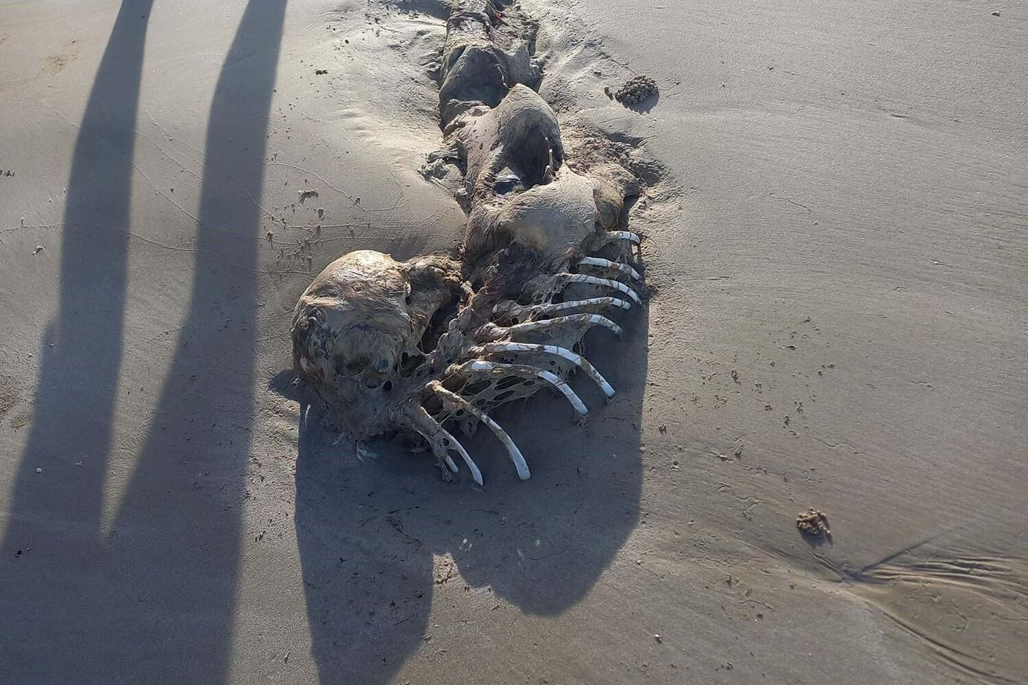 Bobbi-Lee Oates, o homem que se deparou com o esqueleto, recorreu a um grupo de biologia marinha para descobrir a quem pertencia os restos mortais. As fotos que publicou nas redes sociais fizeram com que muitos pensassem que poderia pertencer a um animal, a um humano ou até mesmo a uma sereia.