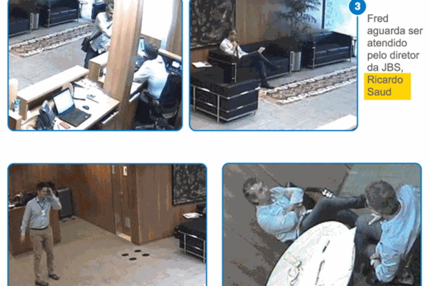 O deputado Rodrigo Rocha Loures, homem de confiança do presidente Michel Temer, destacado para tratar dos negócios com Joesley Batista dos interesses de seu grupo empresarial, é filmado a receber 500 mil reais, cerca de 145 mil euros, por parte de Ricardo Saud, no dia 28 de abril deste ano.As imagens também são comprometedoras para o senador Aécio Neves. Nas filmagens, Frederico Pacheco de Medeiros, primo de Aécio, é apanhado a receber 1,5 milhões de reais, cerca de 435 mil euros, pelas mãos do direitor da JBS, em três vezes distintas, sendo que todas ficaram captadas na videovigilância instalada na sede da JBS, onde ocrreram as entregas. A primeira teve lugar no dia 19 de abril.Estas imagens foram divulgadas depois de a Polícia Federal brasileira ter iniciado uma série de buscas a propriedades do senador Aécio Neves. O deputado foi apanhado em gravações a exigir 2 milhões de reais, 570 mil euros, a Joesley Baptista, empresário que é dono de uma das maiores empresas de produção de carne no Brasil, e que terá filmado o presidente Michel Temer a aprovar o pagamento de um suborno ao ex-deputado Eduardo Cunha, para comprar o seu silêncio sobre transações suspeitas entre empresários e partidos.