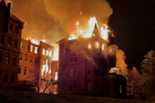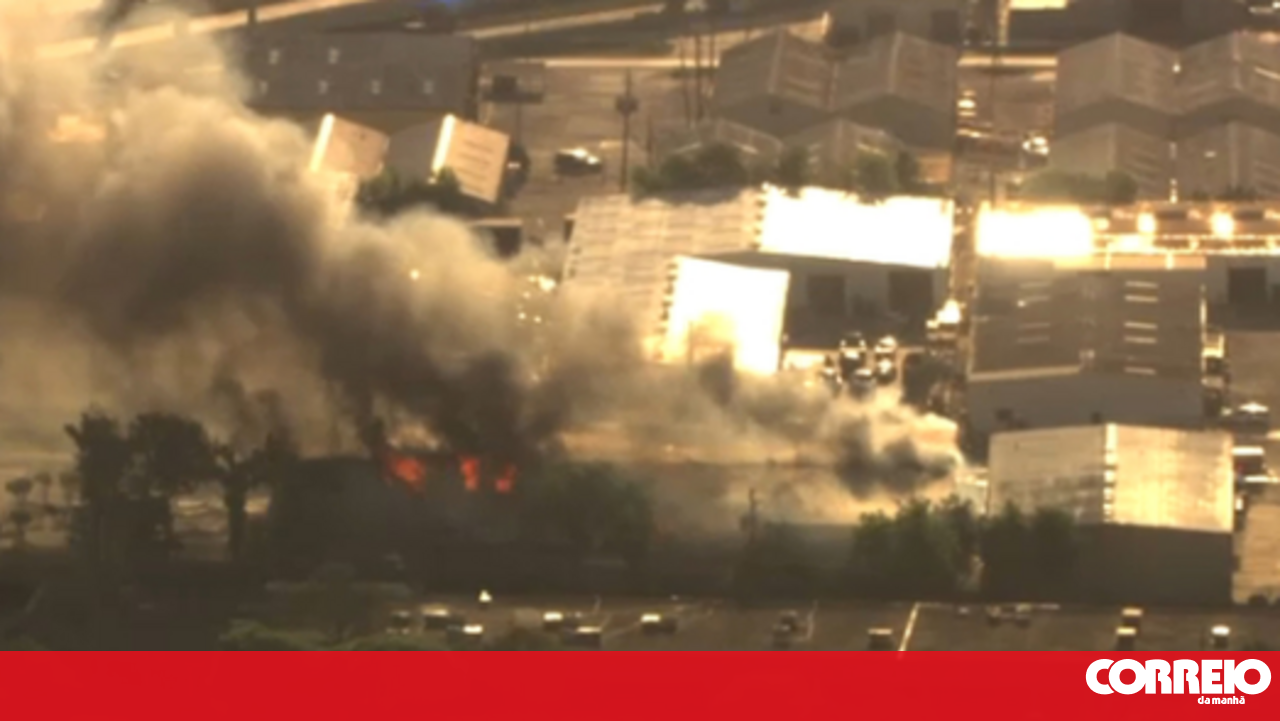 Equipas de socorro estão a tentar combater o incêndio.
