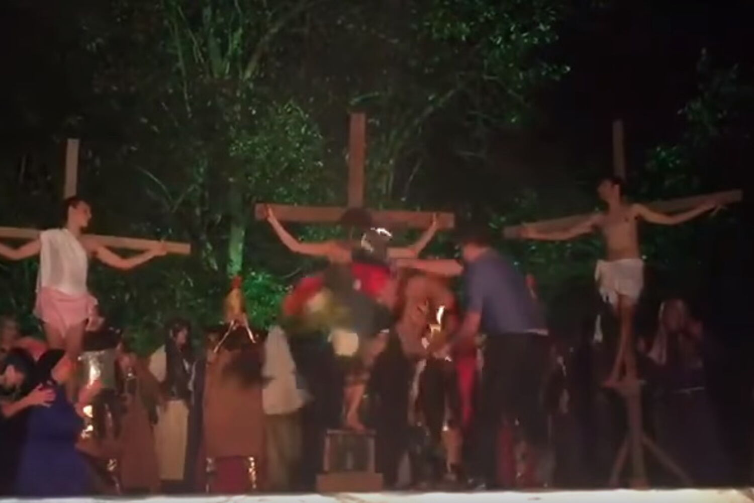 A encenação sobre a Paixão de Cristo ocorria na Praça do Trabalhador, no centro da pequena cidade fundada por imigrantes europeus, e era assistida por cerca de mil pessoas, segundo o secretário de Planeamento, William Silva.De repente, um espectador saiu do meio da plateia, galgou o palco e, com um capacete de mota que levava na mão, começou a agredir o actor Samir Rodrigues, que interpretava o soldado romano que agredia Cristo já pendurado na cruz, interpretado por outro actor.