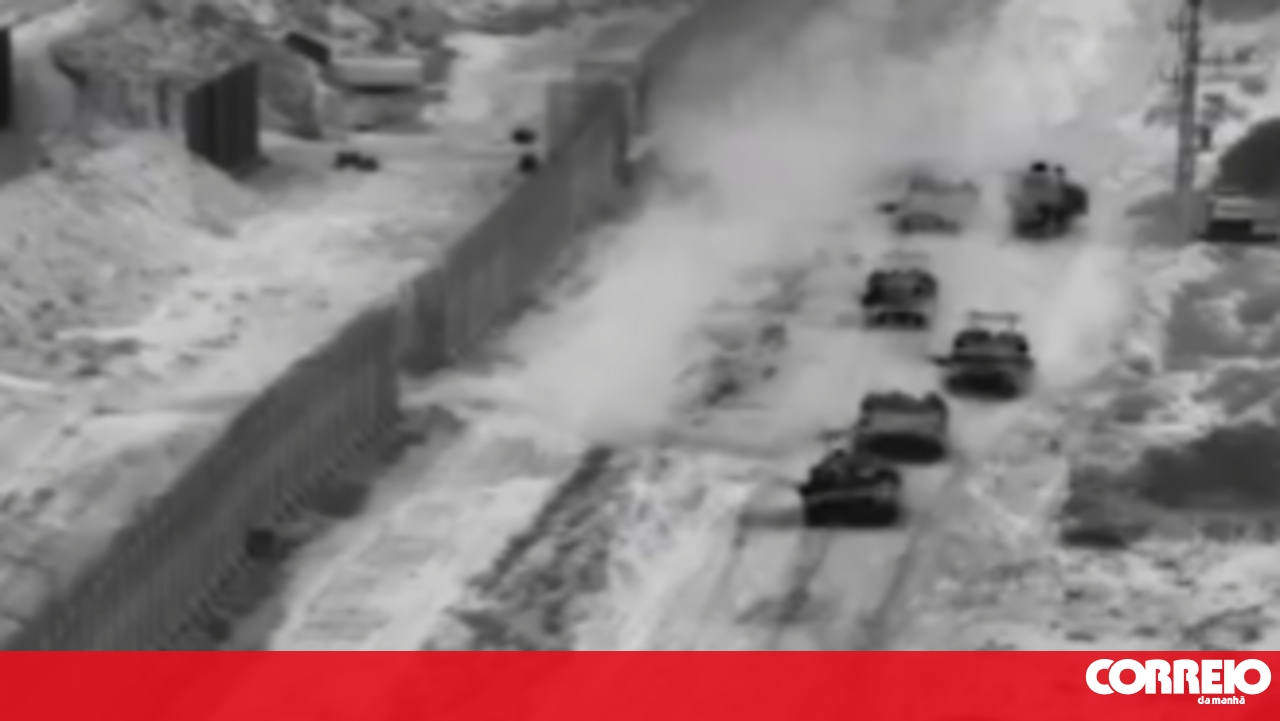 No vídeo divulgado por Israel é possível ver vários tanques a avançarem e a dispararem na direção de Gaza, seguindo-se explosões na cidade e prédios a cair.