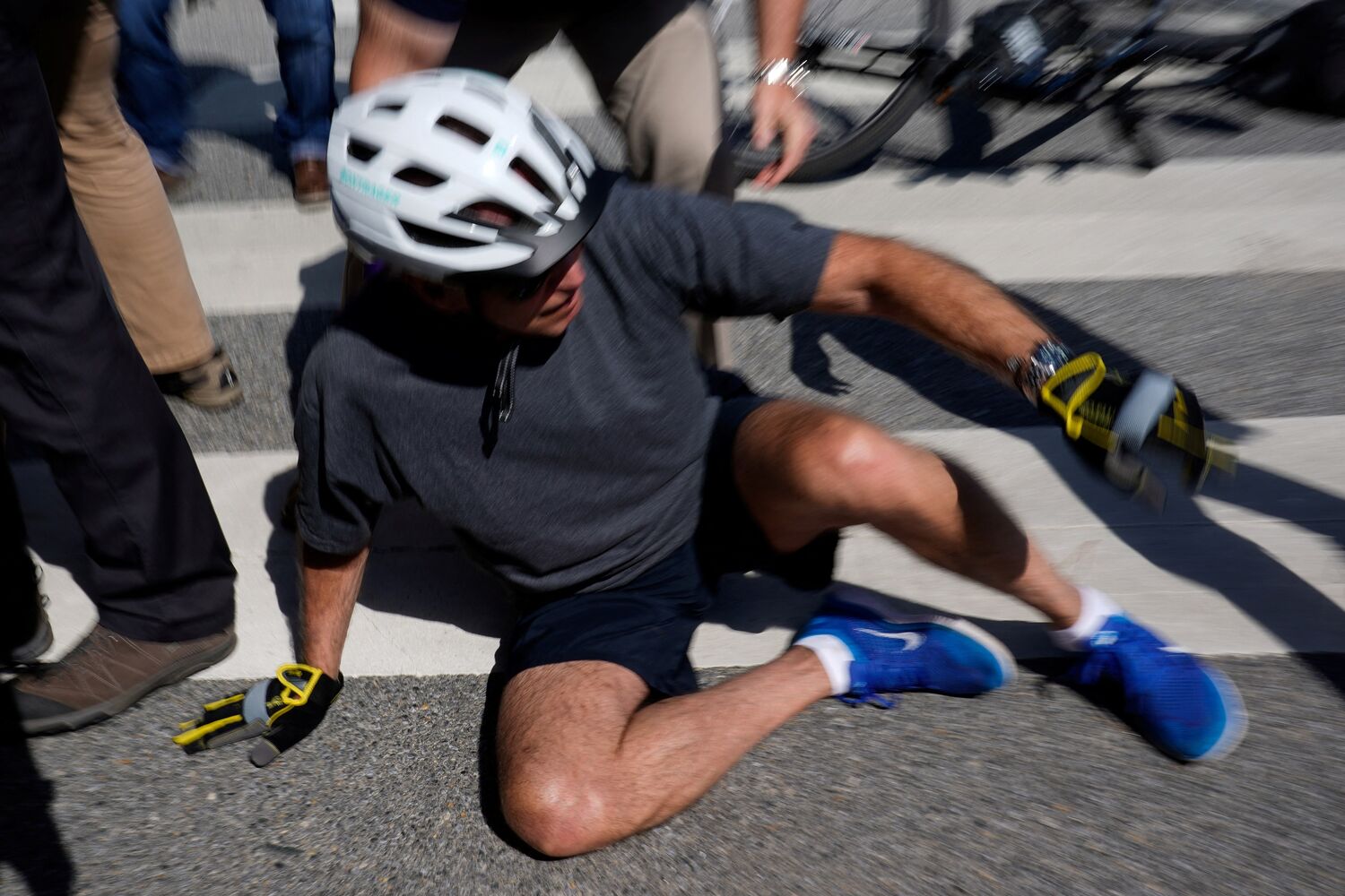 O presidente dos EUA, Joe Biden, caiu enquanto andava de bicicleta perto da casa de férias em Rehoboth, Delaware, nos EUA.