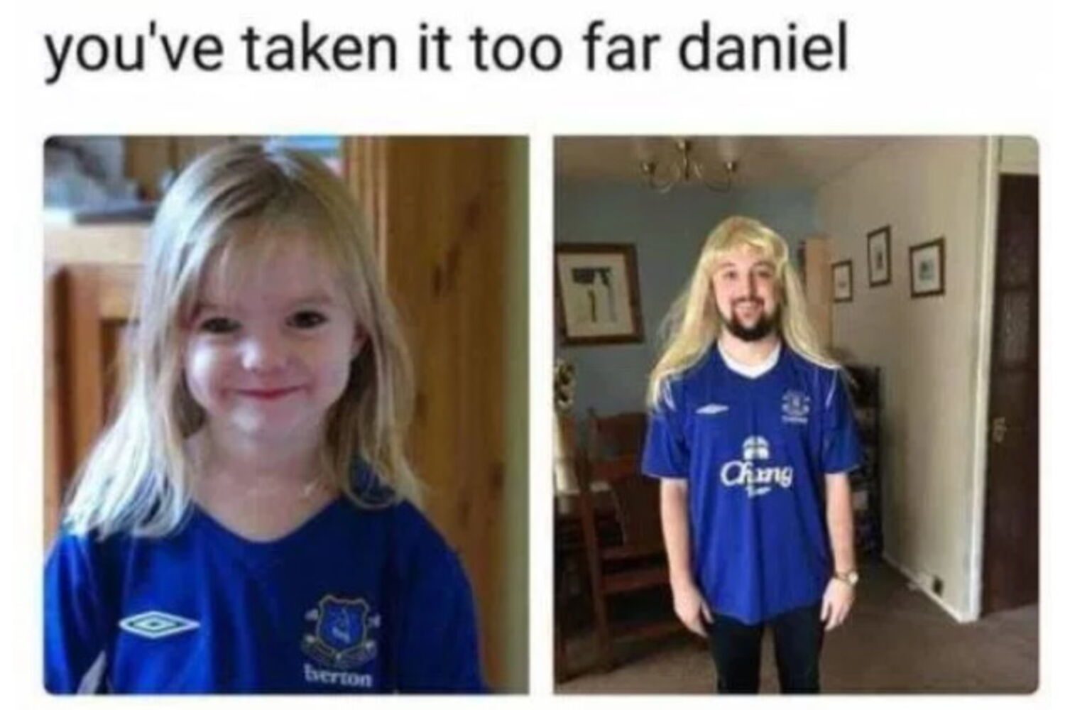 O jovem de 25 anos, natural de Dundee, na Escócia, colocou uma fotografia sua com uma peruca loura e uma camisola do clube de futebol Everton, igual à que Maddie tinha numa das primeiras imagens divulgadas após o seu desaparecimento.