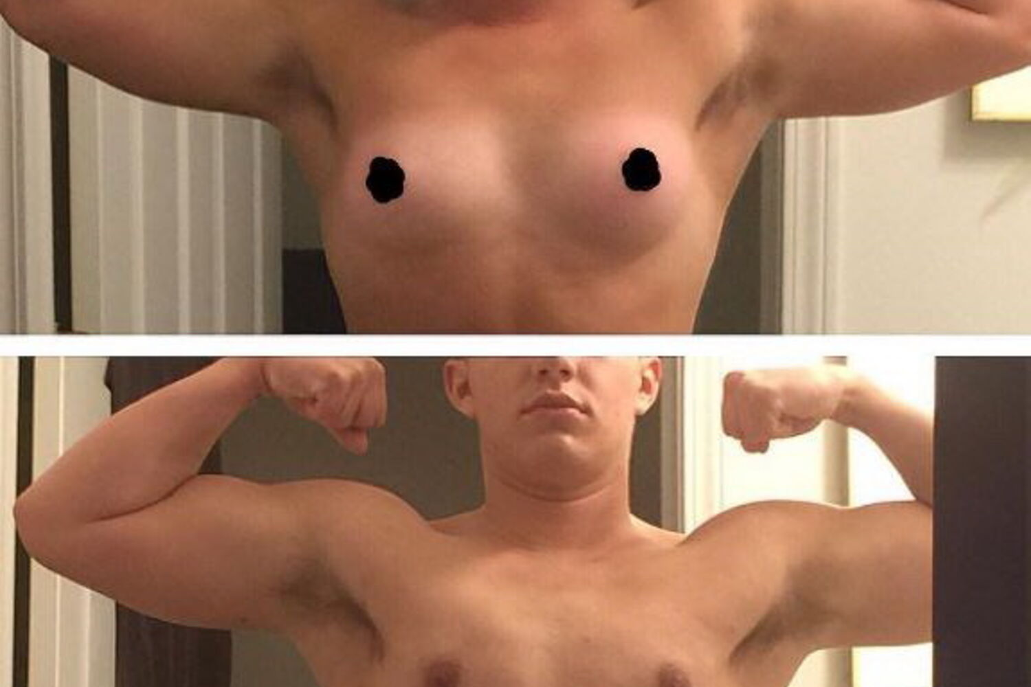 Na fotografia em questão, que conta com mais de 32 mil ‘likes’, o DJ aparece do lado esquerdo enquanto mulher e do lado direito já como homem, no final da operação.