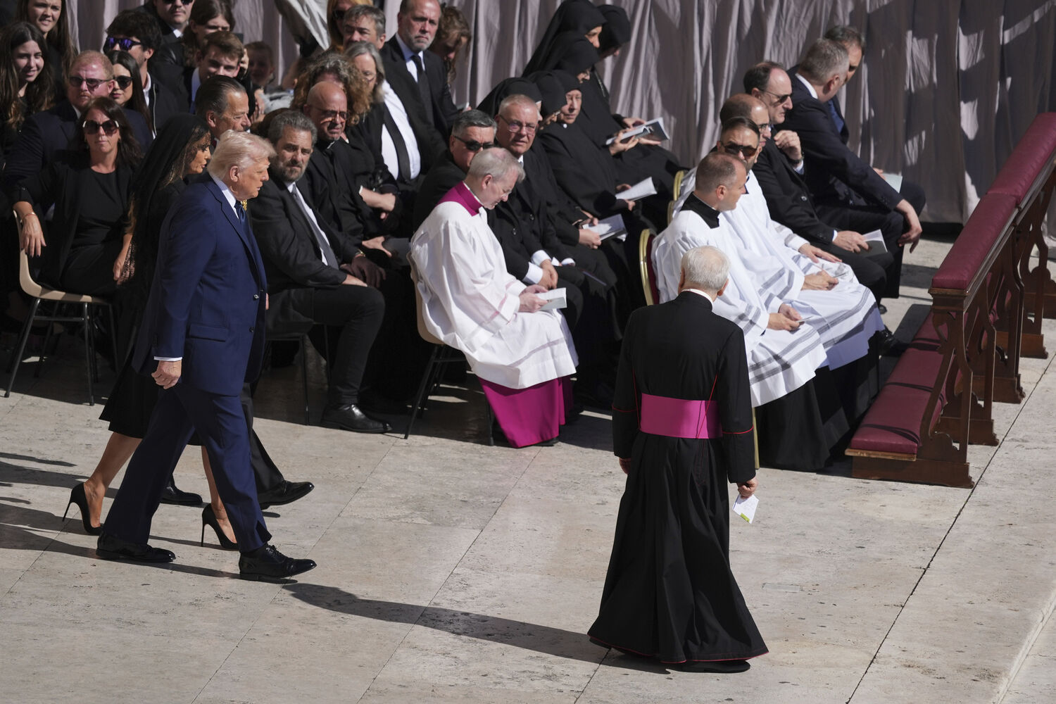 Durante a Eucaristia, os presentes foram convidados a dar o 'abraço da paz', dando cumprimentos de mão. Um vídeo da cerimónia mostrou Trump a observar o gesto à volta dele, mas sem participar no ritual até que Melania o ajudou.