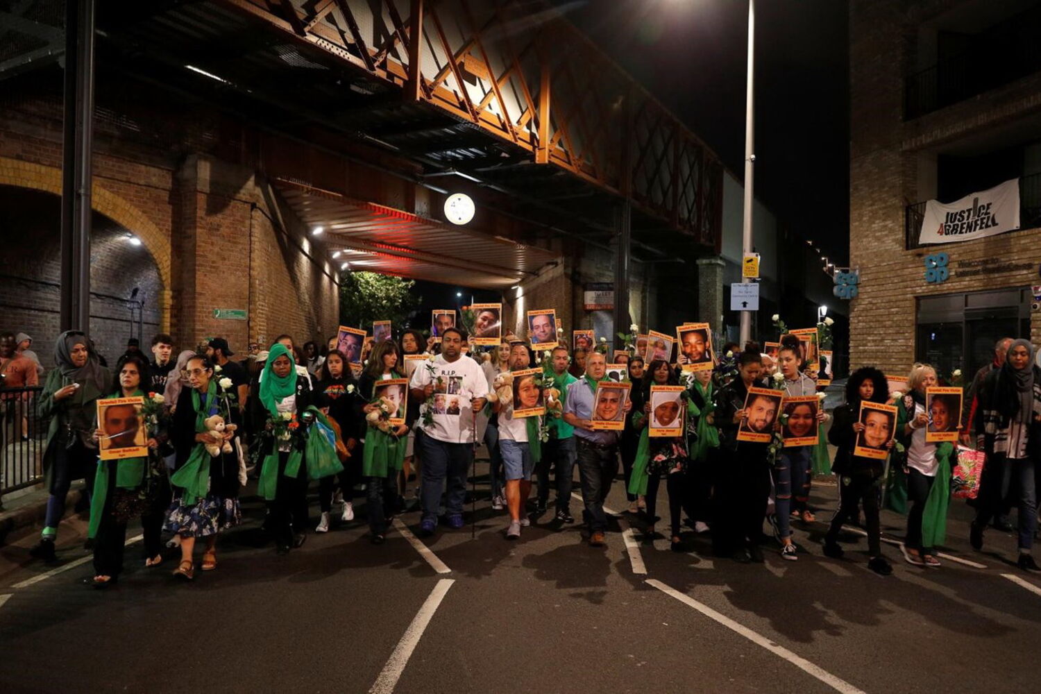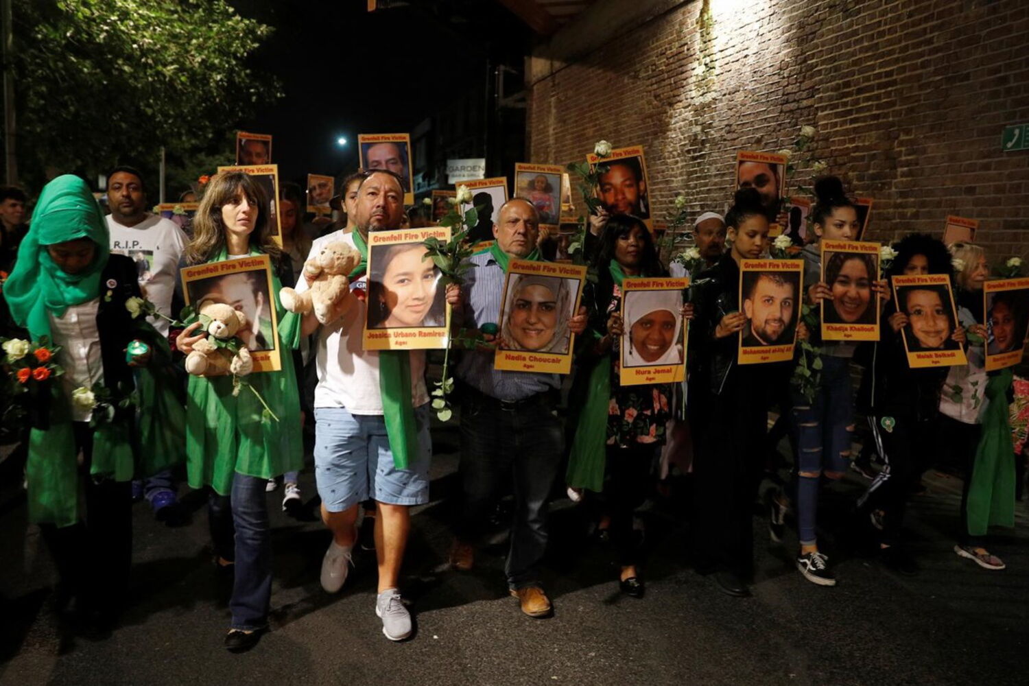 Dezenas de pessoas vestiram-se esta quinta-feira de verde para homenagear junto à Torre Grenfell, em Londres, as 72 vítimas mortais do incêndio que destruiu o edifício há um ano.