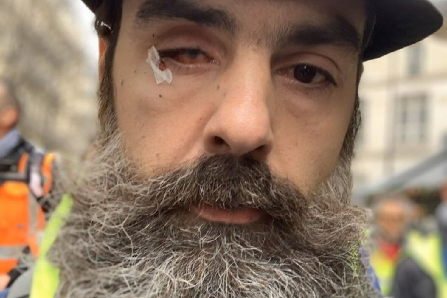 Numa manifestação que reuniu alguns milhares de pessoas em Paris, o lusodescendente voltou a ser ferido, novamente junto ao olho que perdeu em janeiro deste ano durante outro protesto, tendo depois reintegrado o cortejo.