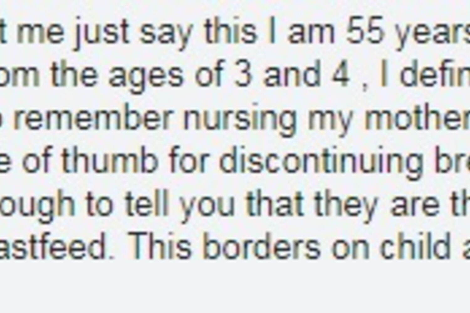 "Se a criança tiver idade suficiente para dizer que está com sede, então está crescida demais para ser amamentada. Isso faz fronteira com abuso infantil na minha opinião", escreve Mike Westfall, utilizador do Facebook.