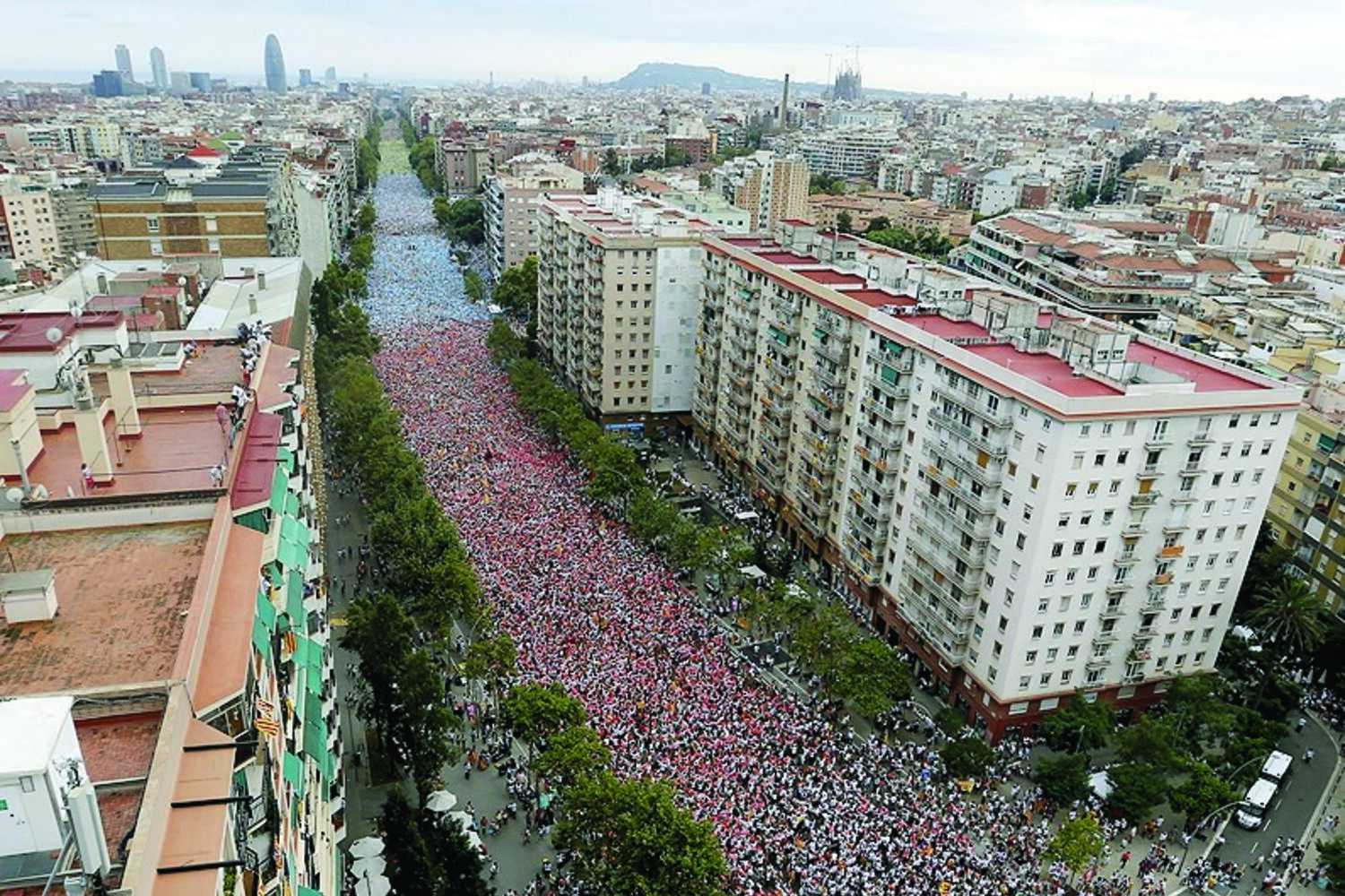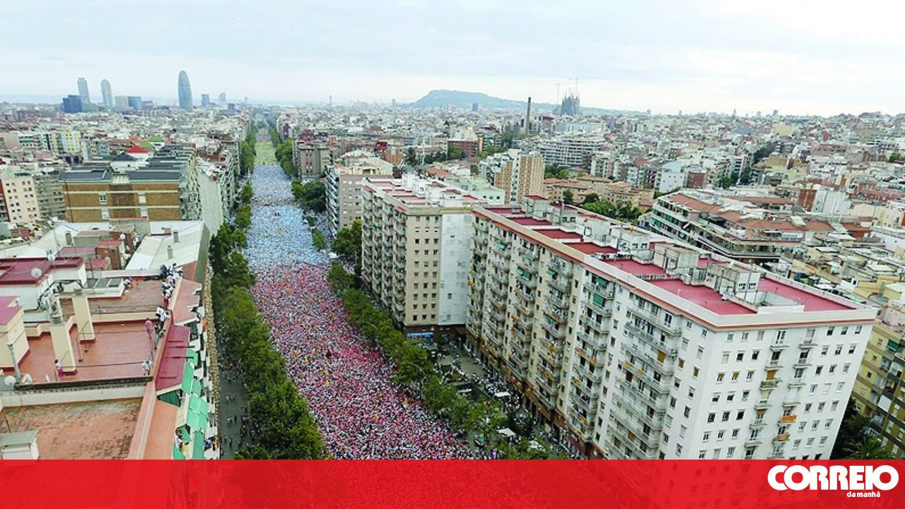 Festa nacional catalã transformada em desfile gigantesco.