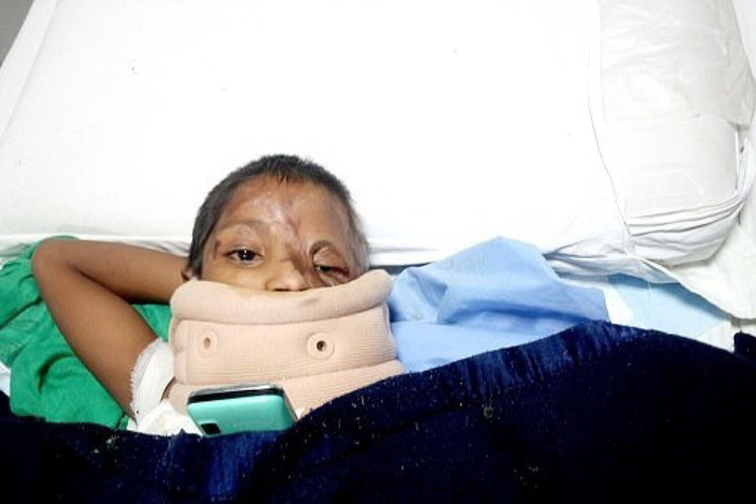No Instituto de Ciências Médicas Sanjay Gandhi, os médicos operarão Julie e conseguiram libertar a pele que prende a cabeça da menina ao pescoço, devolvendo-lhe nova mobilidade.