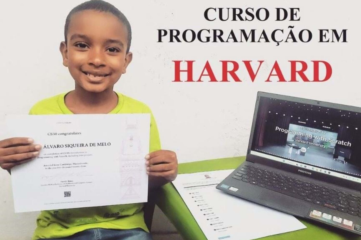 Adriano Álvaro de Melo, um menino brasileiro de sete anos, concluiu este ano um curso de programação em Harvard, nos EUA. O rapaz, que cedo se destacou por ter uma inteligência acima da média, conseguiu uma bolsa de estudo para poder fazer o curso na famosa universidade. Agora, pretende fazer mais formações para reforçar o conhecimento na área da ciência da computação.