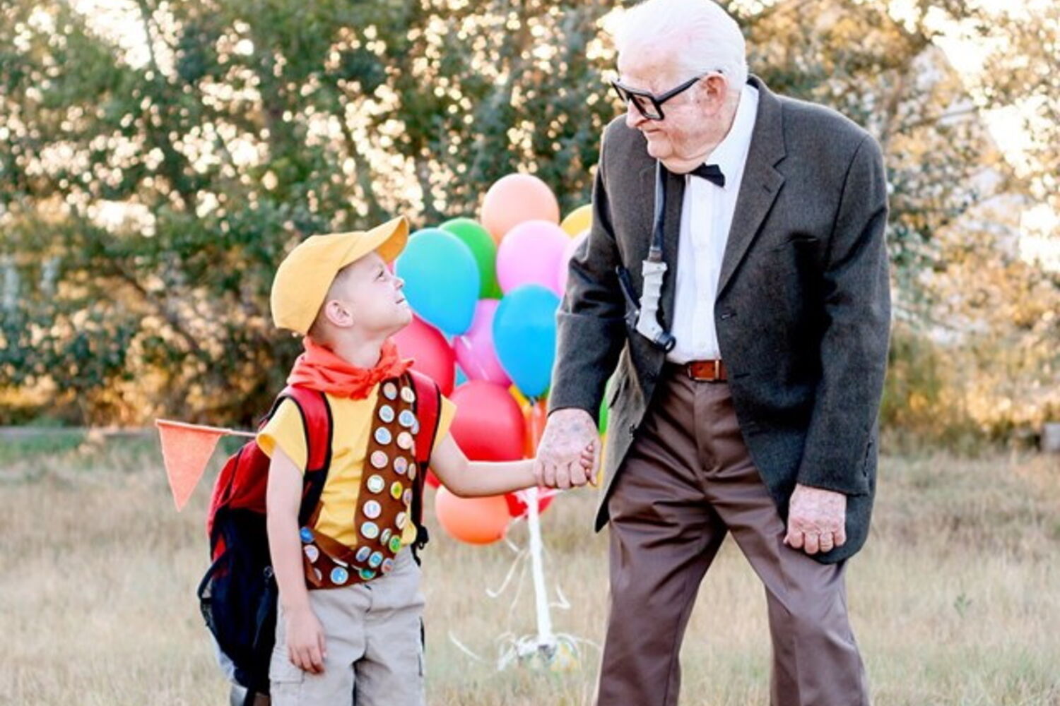 Elijah é um menino de cinco anos apaixonado por um dos filmes clássicos da Pixar: 'Up - Altamente' . O filme retrata a história de um vendedor de balões, Carl, que está prestes a perder a casa que construiu com a mulher após ter ficado viúvo. Na possibilidade de ser iinternado, o homem acaba por colocar centenas de balões à volta de sua casa levando-a a levantar voo. O problema? Russell, um menino de 8 anos, embarcou com ele naquele 'voo' alternativo. Quando a mãe de Elijah, Rachel Perman, lhe perguntou como queria passar o seu aniversário, a resposta da criança surpreendeu-a. O menino queria vestir-se de Russel e os seus bisavós vestiriam-se de Carl e Ellie.