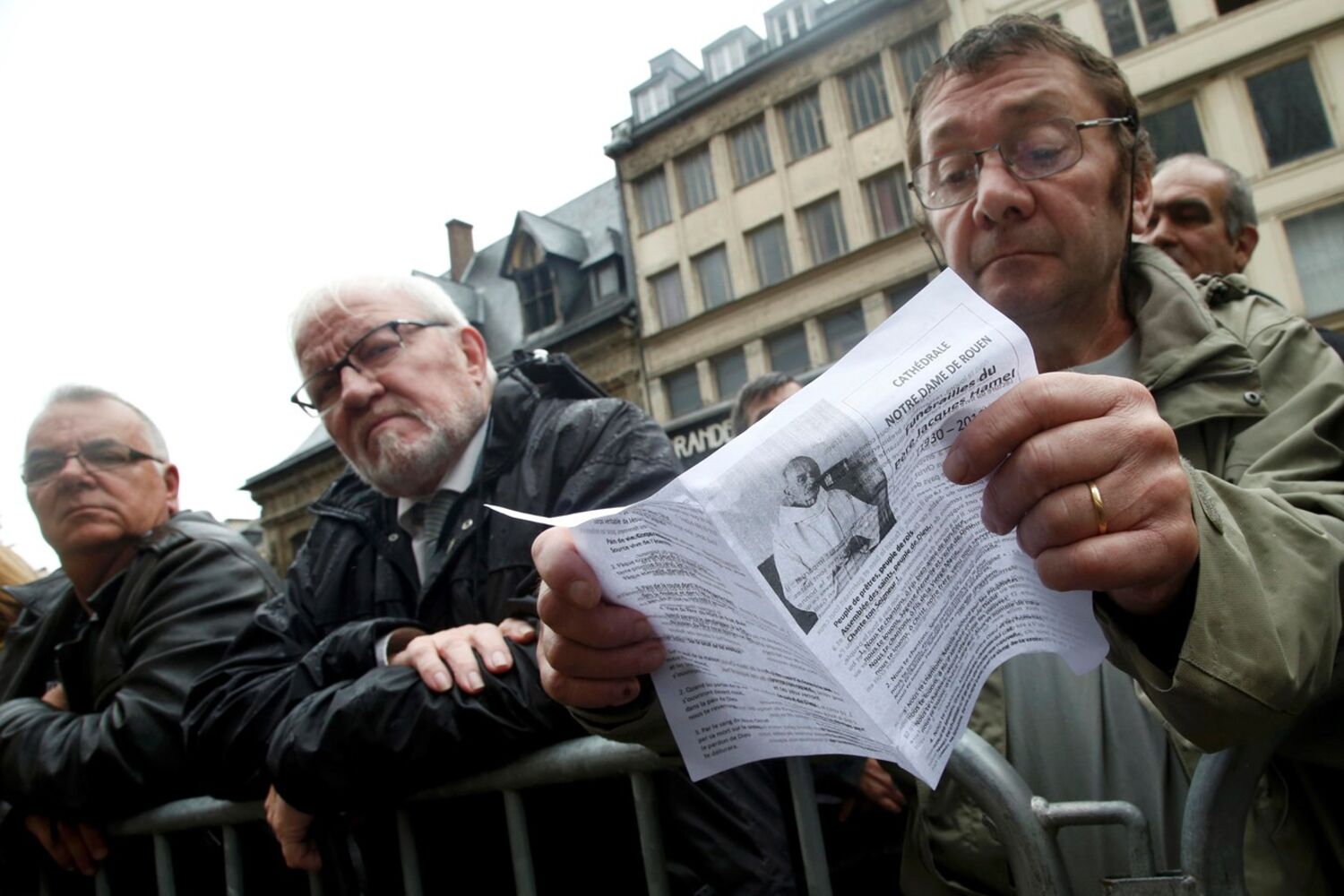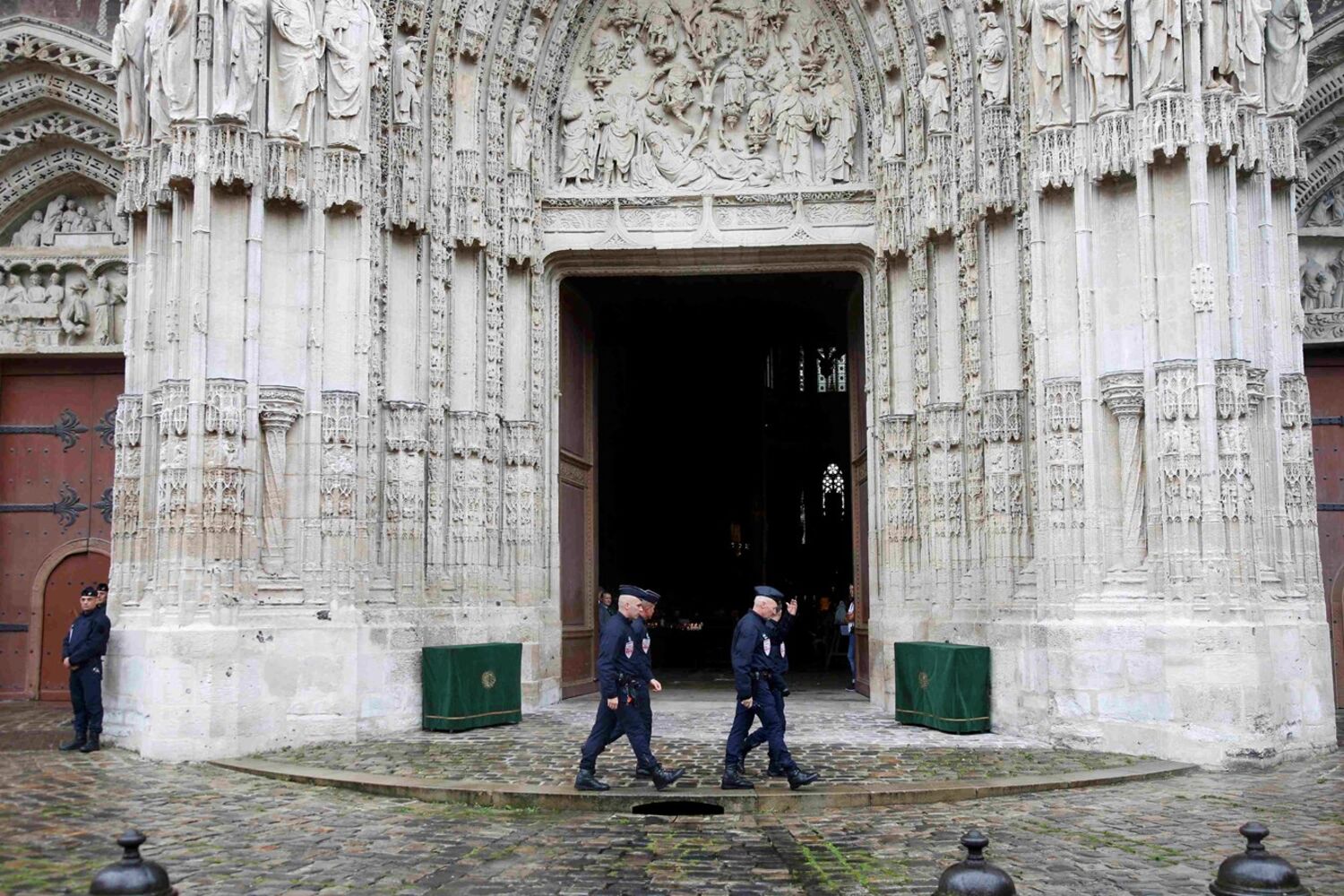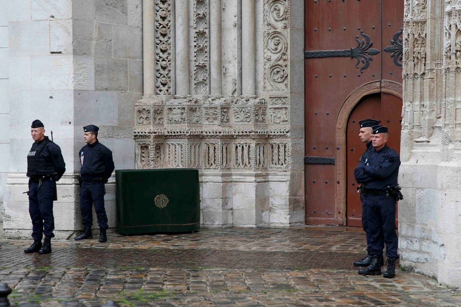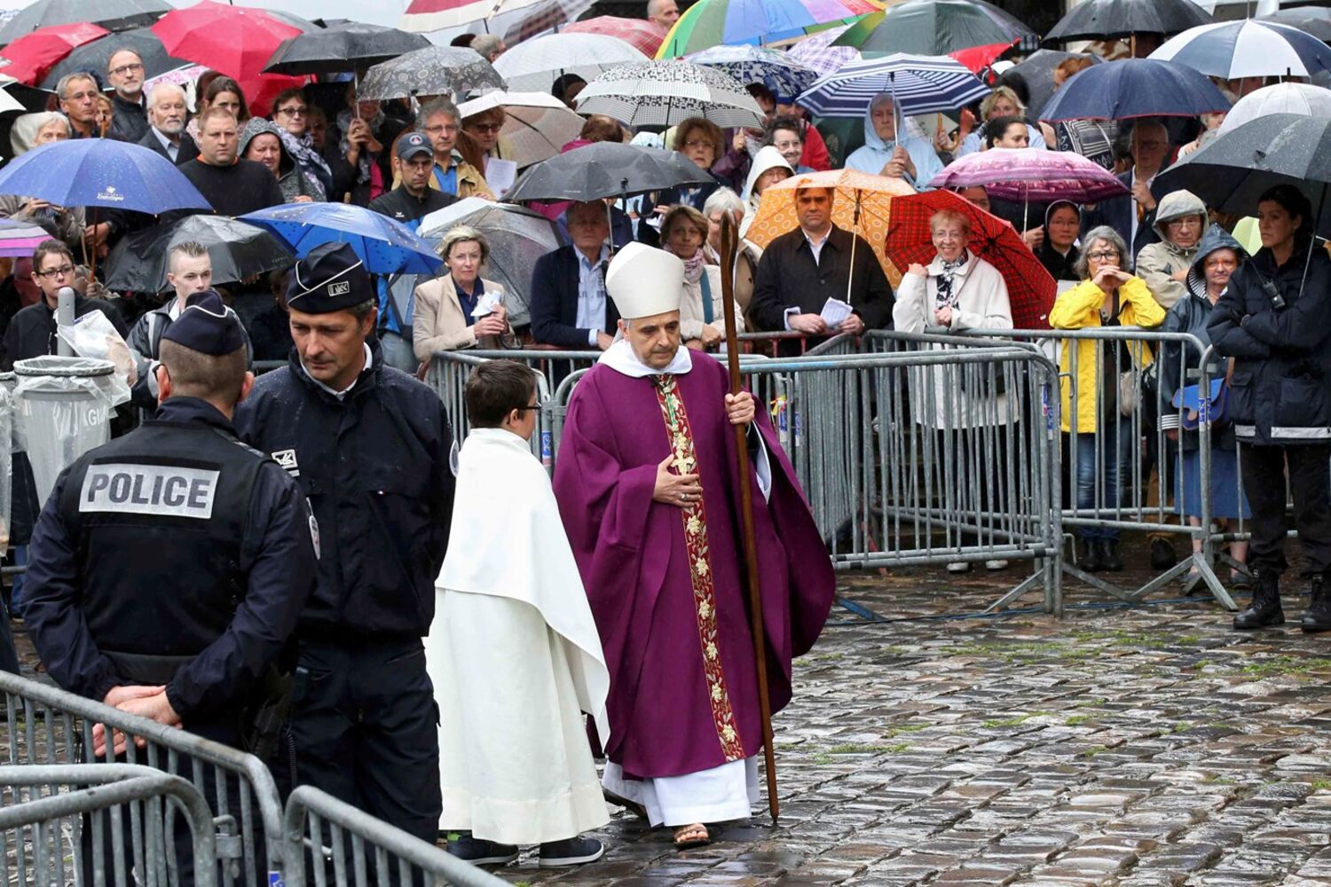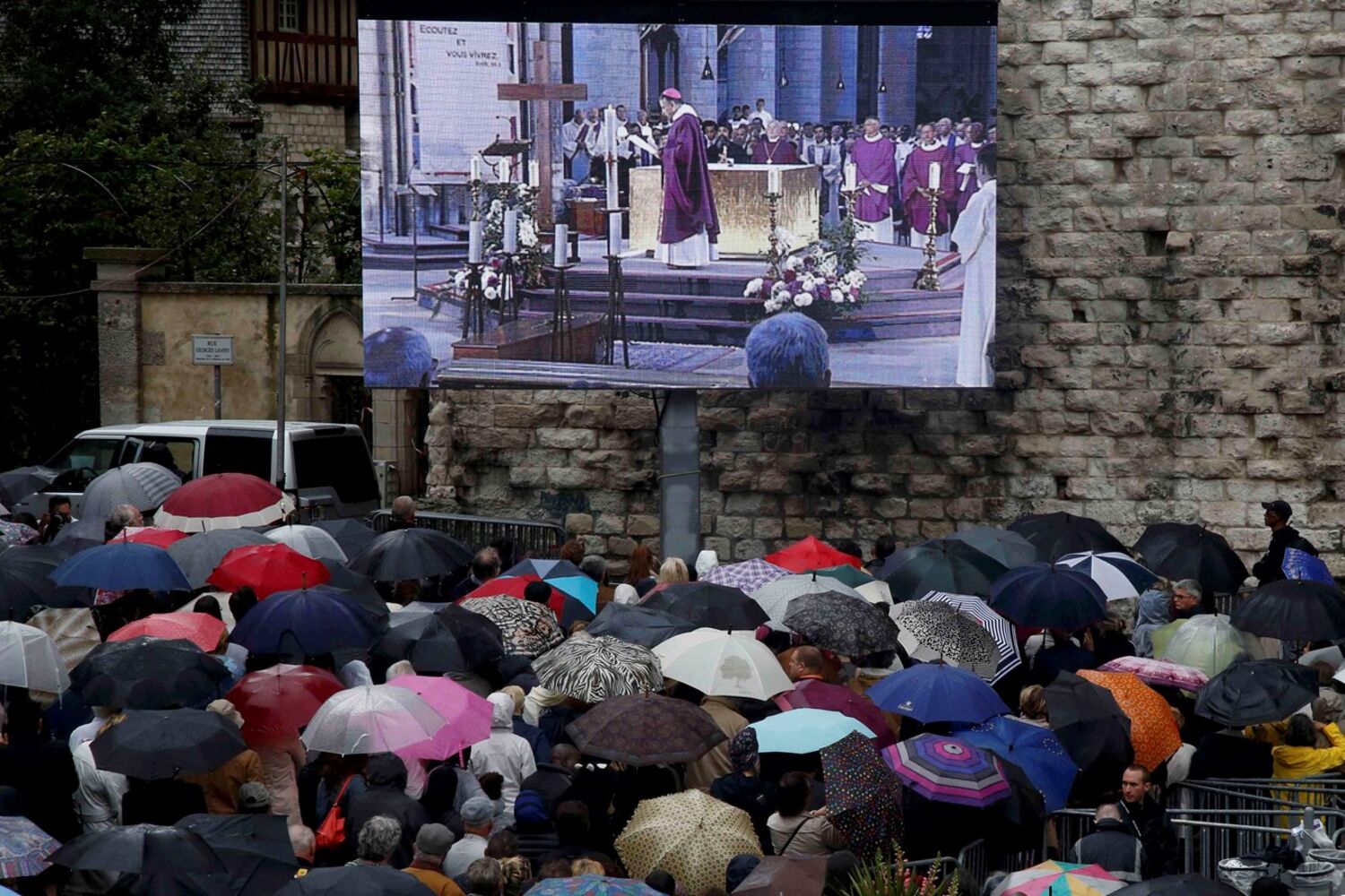 Fortes medidas de segurança foram tomadas durante a cerimónia, conduzida pelo arcebispo da cidade, Dominique Lebrun, e que contou com a presença do ministro do Interior da França, Bernard Cazeneuve, e de líderes religiosos muçulmanos. Além das duas mil pessoas que lotaram o interior da catedral, no exterior uma multidão seguiu a cerimónia através de um ecrã gigante.