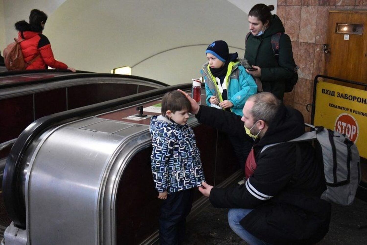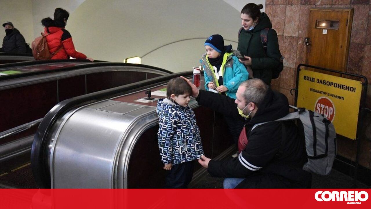 Para muitos outro, o lugar mais seguro é a estação de Kiev, onde famílias se refugiam de futuras explosões ou bombardeamentos.