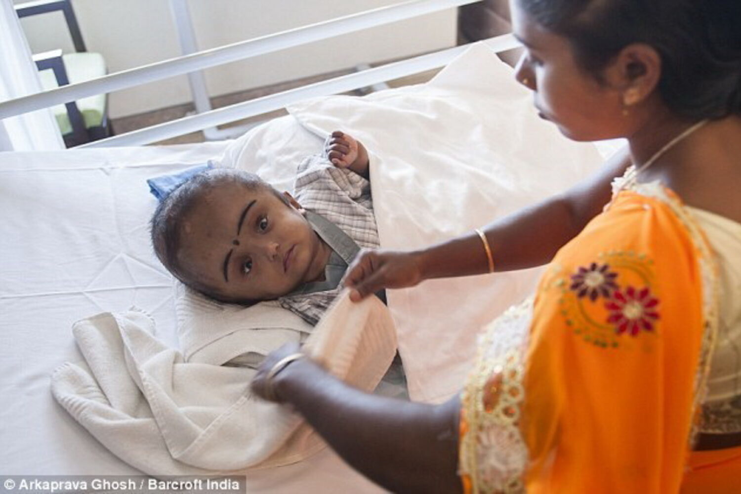 Em 2013, os seus pais, em desespero, recorreram à imprensa na tentativa de ajudar a filha. Um hospital de Nova Deli aceitou tratá-la de graça e nos últimos quatro anos ela foi operada oito vezes, com os cirurgiões a reduzirem a circunferência da sua cabeça de 94 para 58 centímetros.
