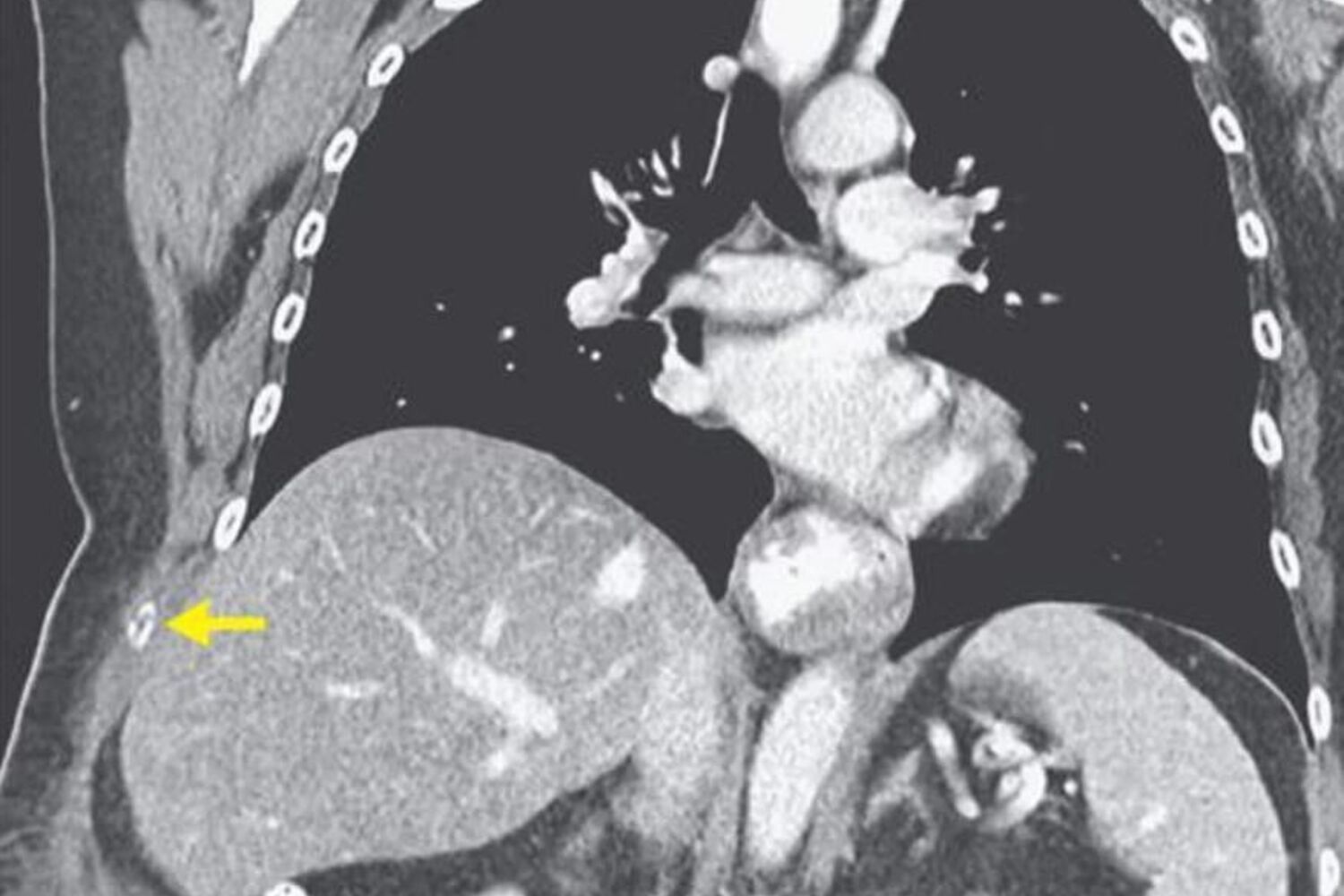 A utente, que tinha sido diagnostica com gripe uns dias antes, dirigiu-se ao hospital com muitas dores. Foi aí que o médico se apercebeu que tinha um enorme hematoma por baixo do peito direito e uma dor aguda sempre que se lhe tocava.