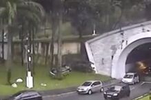 Uma mulher sobreviveu sábado depois de cair ao mar de uma altura de 35 metros ao ser 'empurrada' pelo seu carro num acidente de trânsito na ponte Rio-Niteroi, na região metropolitana brasileira do Rio de Janeiro, revelou a polícia.