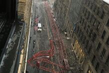 A mulher sofreu pequenas lesões na coluna e na anca depois de ter caído de uma altura de dois andares, tendo sido assistida por funcionários da loja antes de ser transportada para o hospital, onde se encontra internada em estado estável.