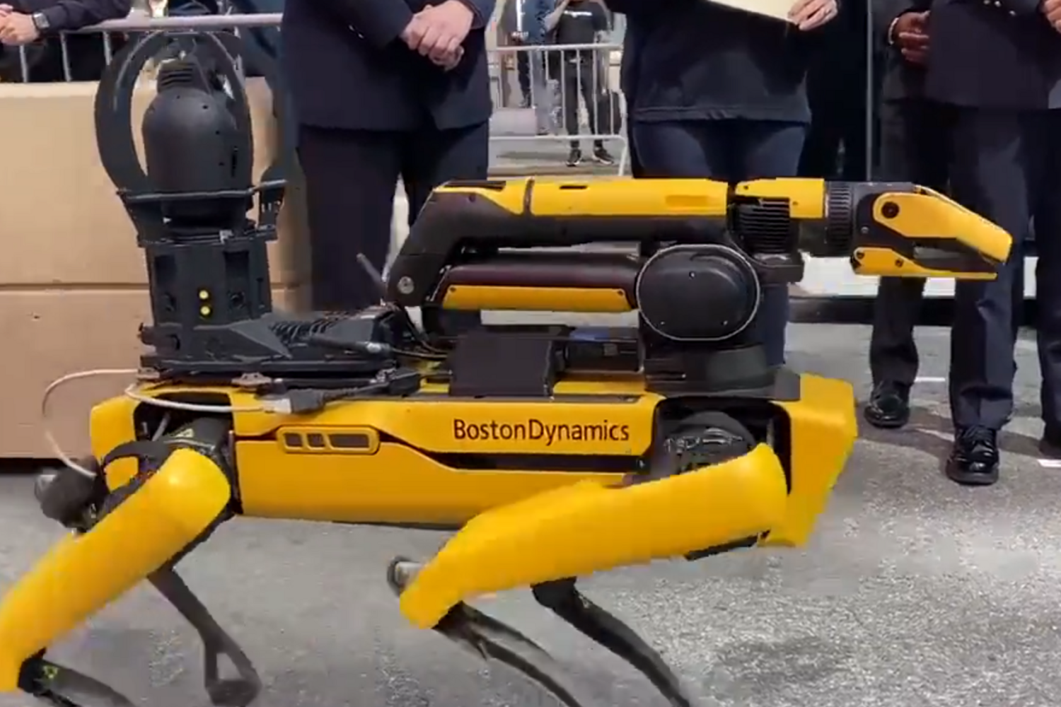 Este robô amarelo, com aspeto de um cão, com uma câmara no lugar da cabeça, produzido pela Boston Dynamics, foi criticado na altura por vários defensores dos direitos civis, levando o executivo autárquico anterior, liderado por Bill de Blasio e descartá-lo, entregando-o ao corpo de bombeiros.