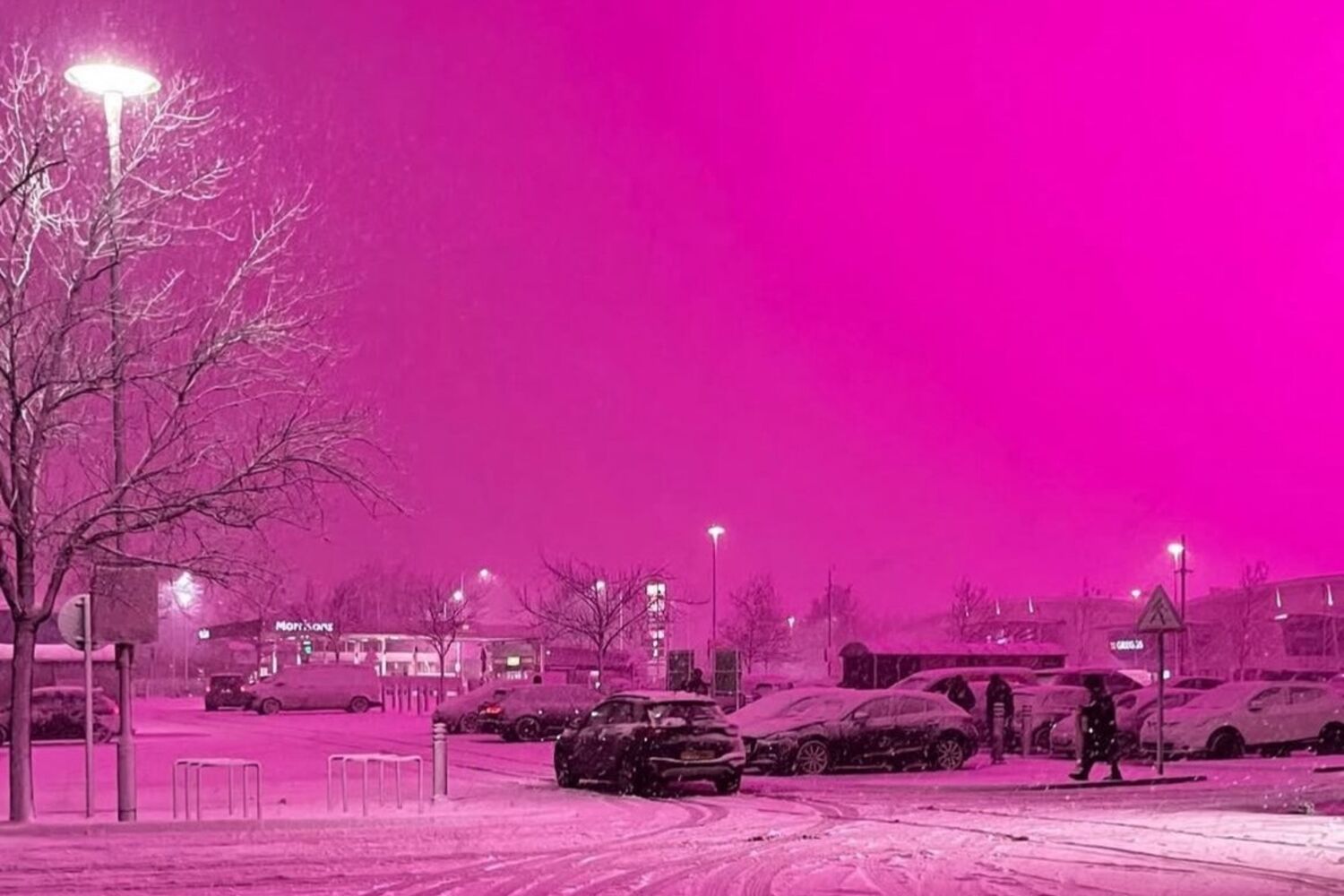 Em Birmingham, no Reino Unido, os cidadãos foram surpreendidos por um fenómeno curioso, na noite de quinta-feira. O céu da cidade tomou uma cor rosa néon e criou imagens que parecem Inteligência Artificial - mas não são.