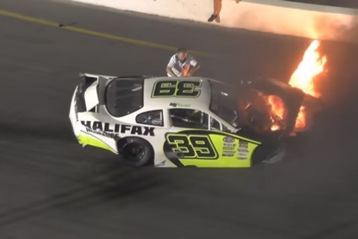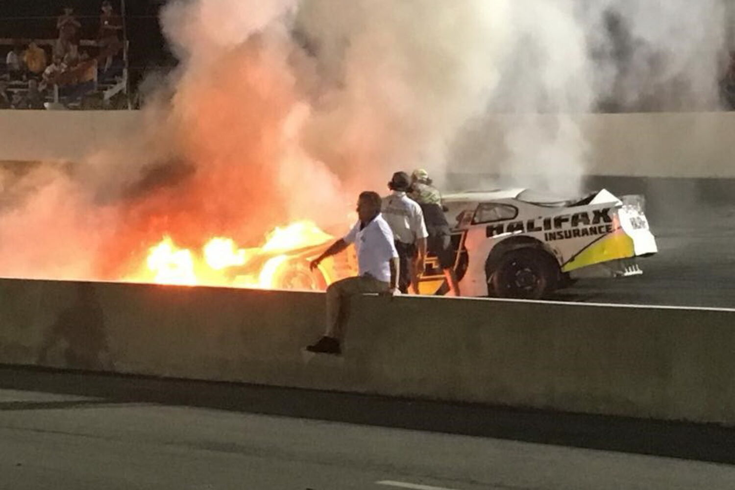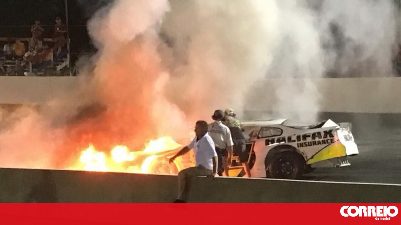 Pai salva filho de carro em chamas em pista de corrida