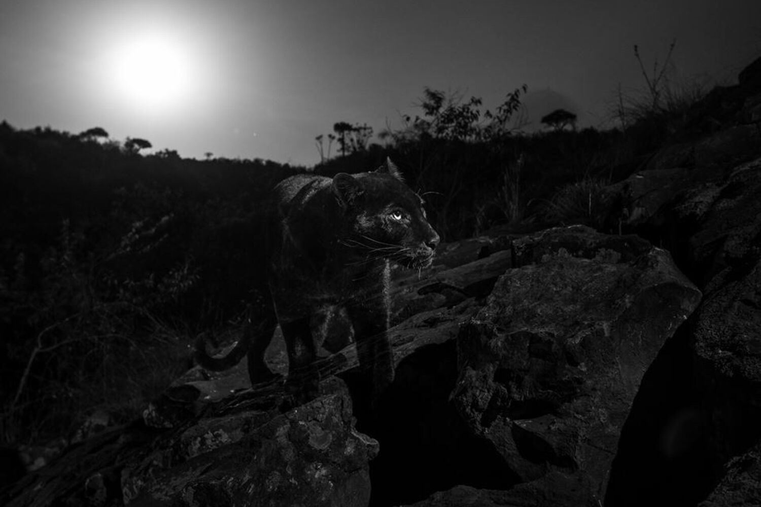 A mítica pantera negra, também conhecida como leopardo negro africano, foi recentemente fotografada na selva, em Nanyuki, Quénia.
