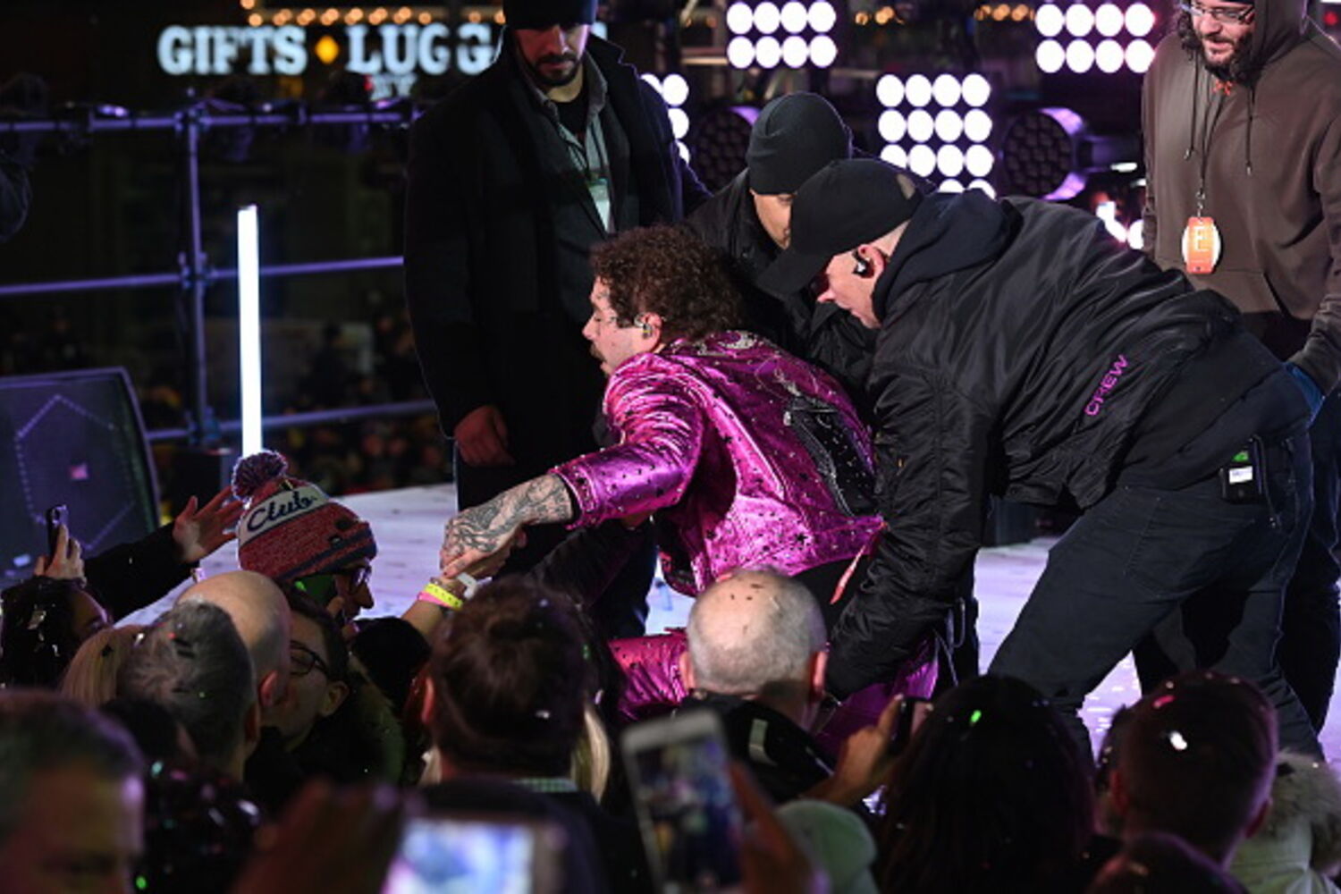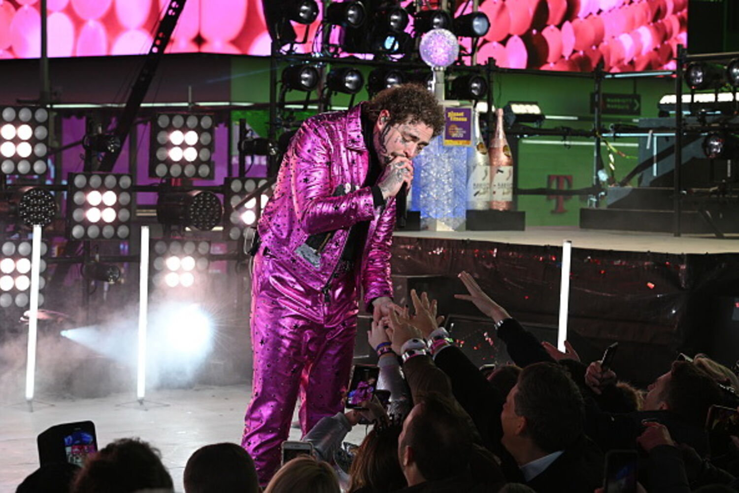 Post Malone entrou em 2020 com uma queda do palco em Times Square, Nova Iorque. O artista de 24 anos estava a atuar no evento de Ano Novo de Dick Clark com Ryan Seacrest ao lado do grupo de K-Pop BTS.