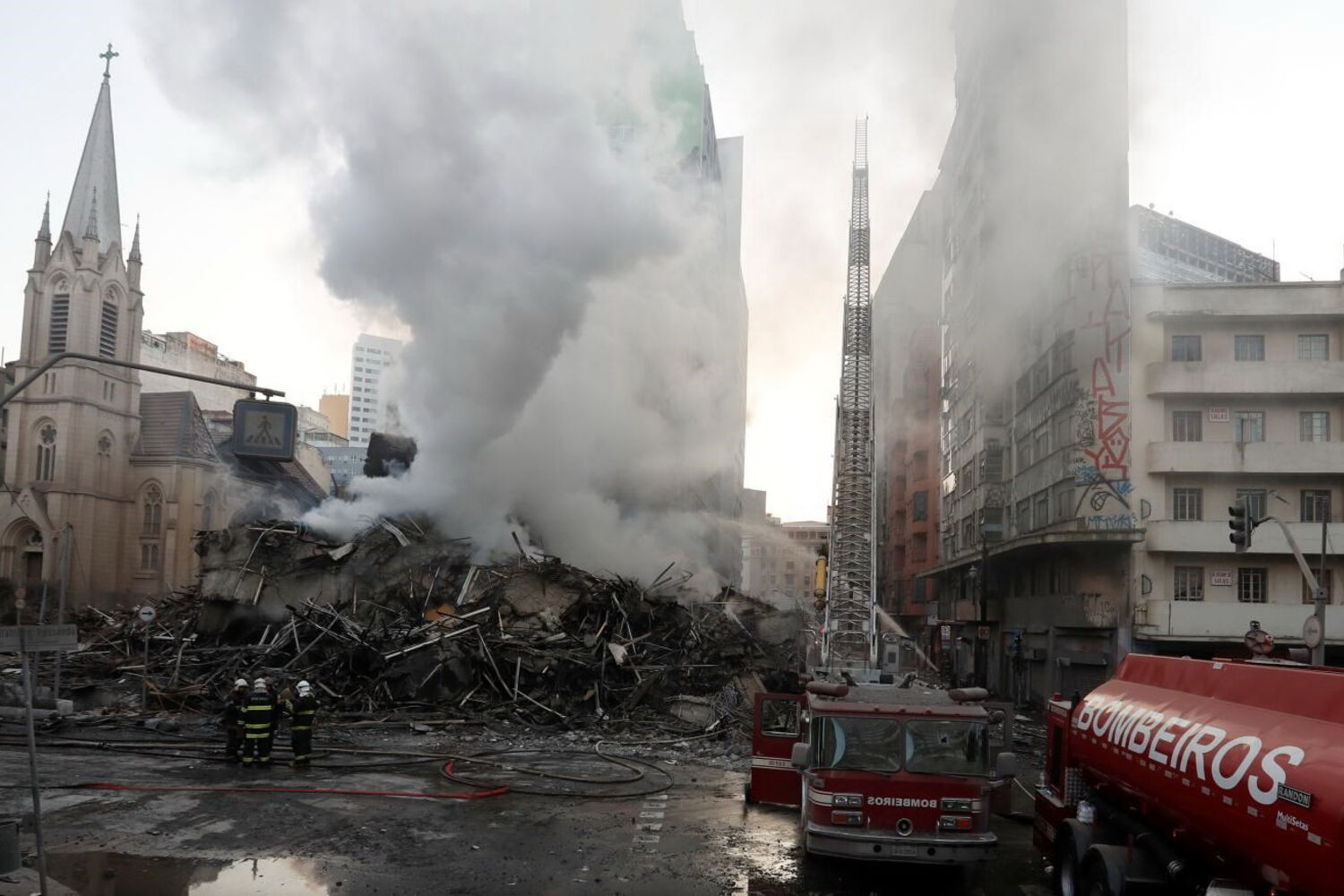 O fogo começou cerca de uma hora antes no quinto andar, na sequência de uma discussão entre um casal que usava um fogão a álcool. Com o prédio cheio de madeira, papelão e plástico com que os moradores improvisavam 'casas' onde antes eram escritórios, as labaredas rapidamente tomaram conta de tudo e a estrutura do imóvel, de 1968 e sem manutenção há anos, não resistiu. As chamas eram tão altas que atearam fogo até em prédios no outro lado da rua.