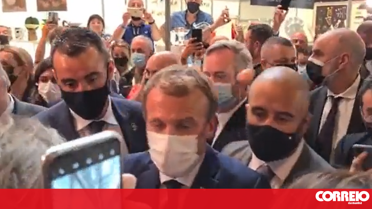 O presidente francês, Emmanuele Macron foi atingido com um ovo na cabeça, quando participava num evento público, esta segunda-feira, em Lyon.