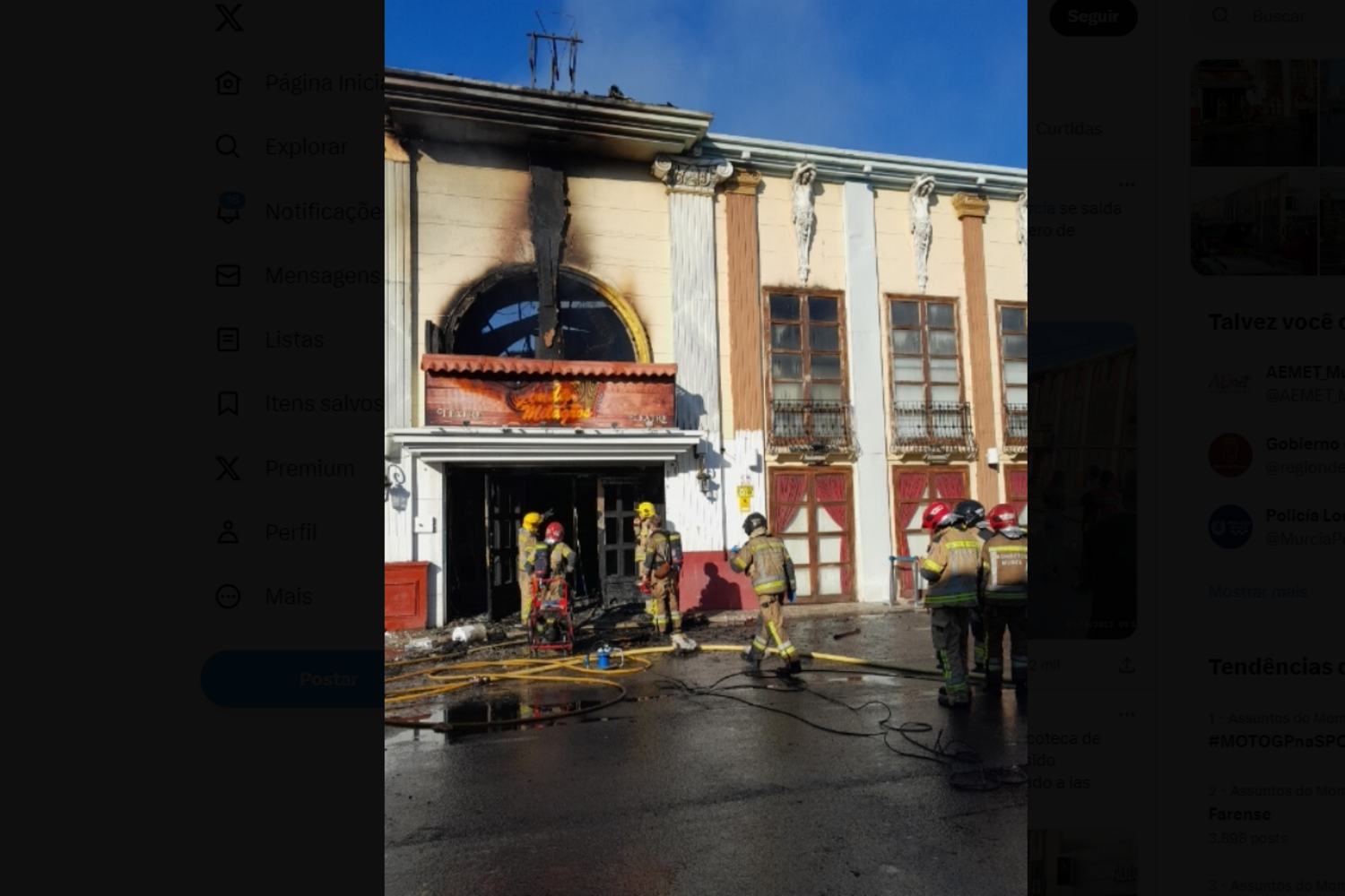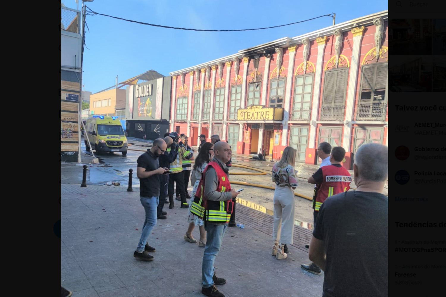 O líder do Partido Popular, Alberto Núñez Feijóo, lamentou as mortes no incêndio na discoteca Teatre. "Lamento muito e quero acompanhar a dor dos familiares das vítimas do incêndio ocorrido esta madrugada em Murcia", escreveu Feijóo na rede social X/Twitter.