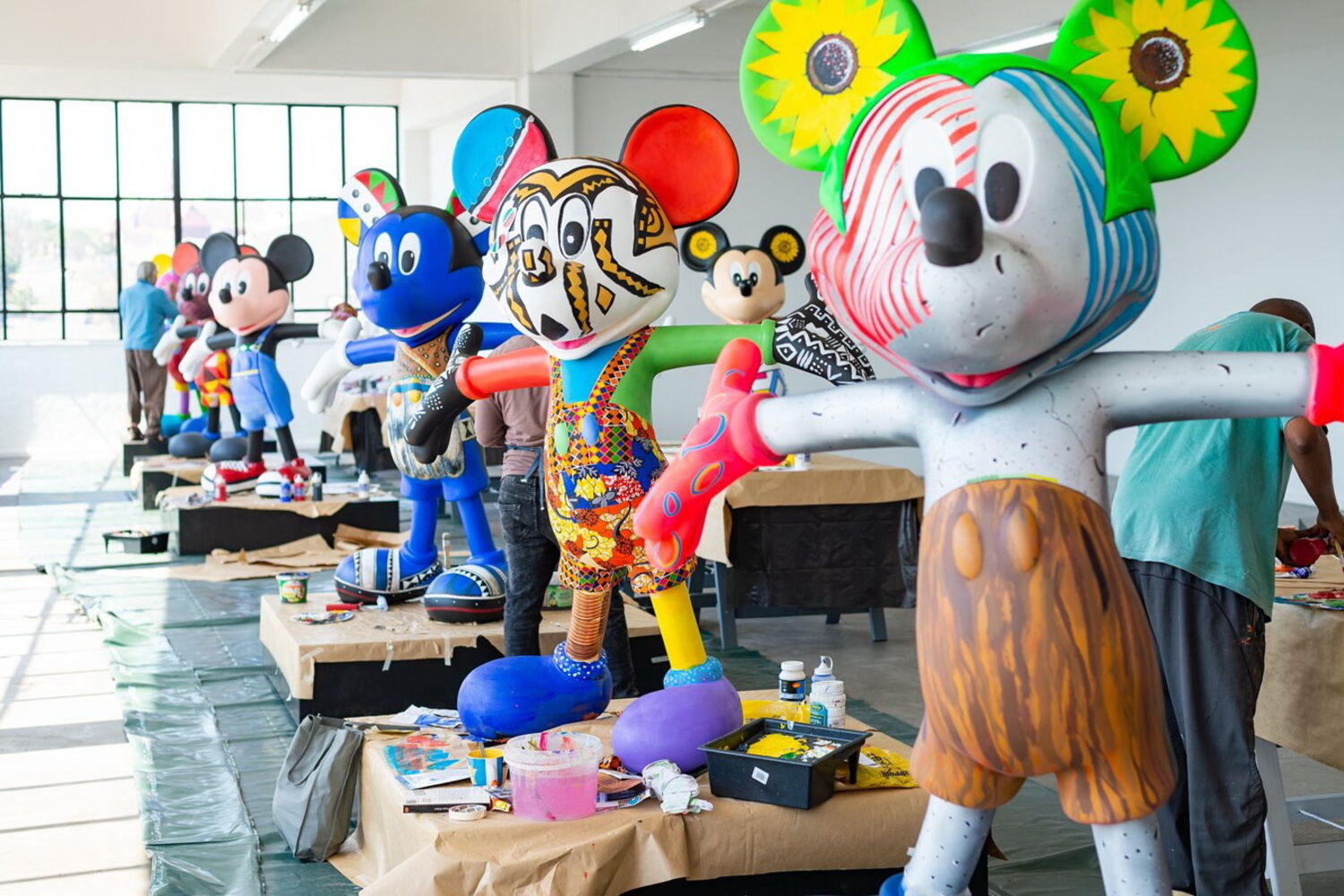 Artistas sul-africanos pintaram e enfeitaram estátuas do "Rato Mickey", personagem criada pela Disney há 90 anos, utilizando estilos que refletem a diversidade Acultural do continente e dando-lhe uma alternativa às habituais luvas brancas, calças vermelhas e sapatos amarelos.