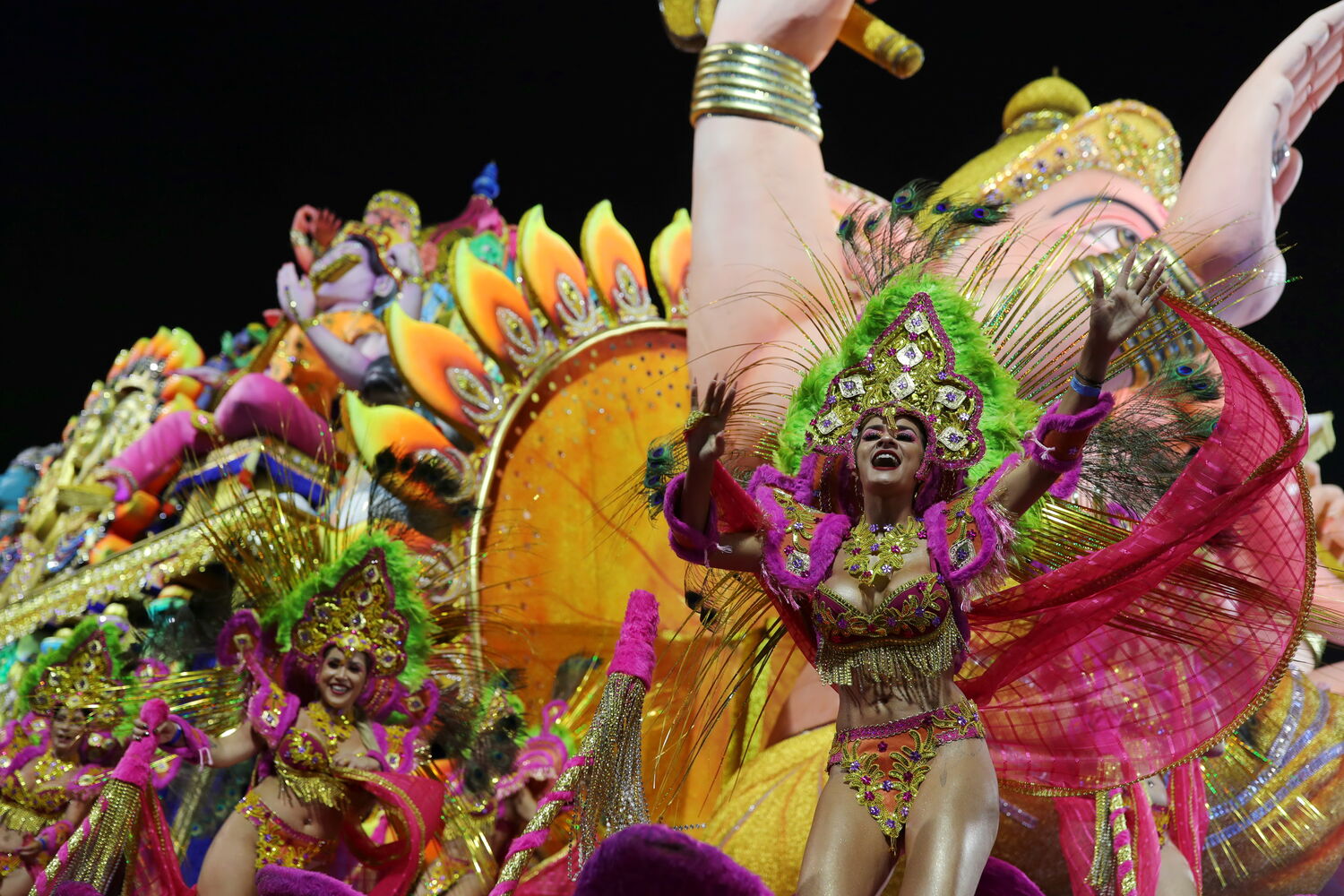 Noite de domingo é dedicada aos desfiles das escolas de samba do grupo principal do Rio de Janeiro.