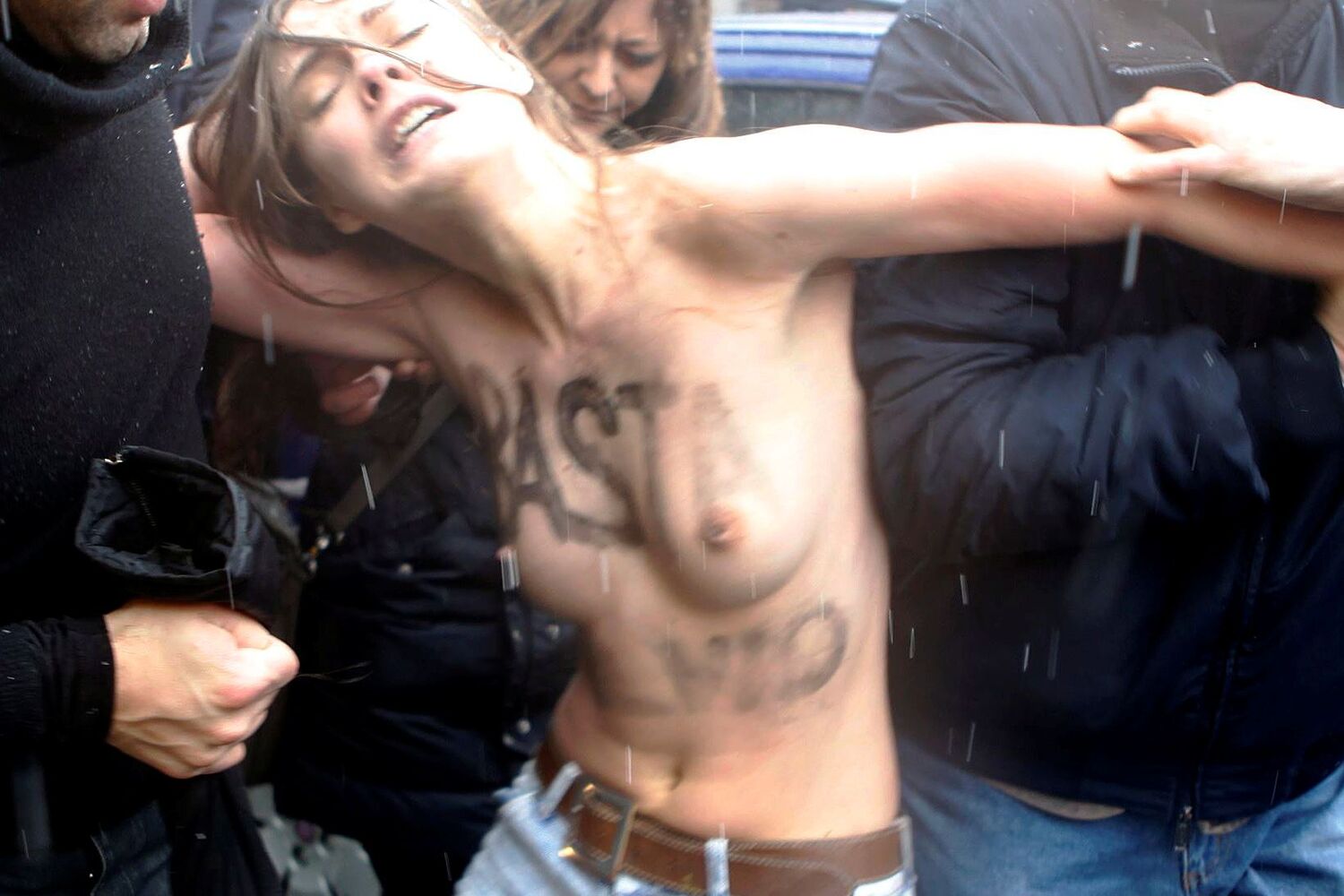 Ativistas do grupo feminista ucraniano Femen, as mulheres , seminuas, aproximaram-se da assembleia de voto e gritaram "Basta, basta, Berlusconi", tentando mesmo acercar-se de ‘Il Cavalieri’, mas foram imediatamente arrastadas por polícia e detidas. Na sua página na internet, o grupo apelidou o antigo governante de "pervertido sujo" e defendeu que a Itália "não deve votar em alguém que deveria estar na prisão".
